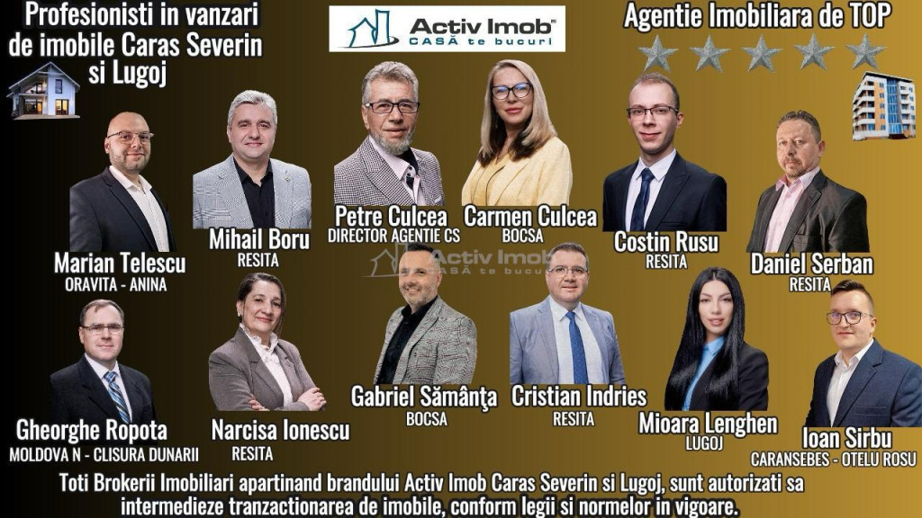 1. BENEFICII PENTRU CLIENTII ACESTEI OFERTE: APARTAMENT CENTRAL, PREMIUM !!! - Apartamentul este situat la Parterul inalt, al unui imobil cu regim de inaltime, P 4 etj., Este confort 1, Decomandat, Renovat Premium, compus din 3 camere generoase, foarte luminoase, una cu destinatie de living si 2 dormitoare spatioase, 1 bucatarie generoasa, open-space, cu insula, 1 baie mare cu cada si geam de aerisire, 1 WC de servici, alt hol intre camere si bai, totul la o suprafata construita de cca. 93 mp; BOXA in Acte. - Apartamentul este extrem de curat si luminos, renovat cu materiale de calitate superioara, Izolatie Fonica, cu instalatie electrica si sanitara, schimbate in totalitate, canalizare separata, centrala termica, ferestre termopan si rulouri, usi interioare noi, usa metalica la intrare, in baie si Bucatarie este aplicata gresie si faianta de calitate superioara, parchet de calitate, mobila moderna, de calitate, toate aplicate intr-un design simplu si cu bun gust; - Bucataria este open space, cu mobila la comanda, cu insula, masina spalat vase, cuptor microunde, TV in Bucatarie, cu plita si cuptor electric, hota si Combina Frigorifica incorporata in mobila. - Apartamentul este extrem de curat, luminos, ingrijit, aerisit, nu prezinta urme de infiltratii, scara imobilului este foarte curata si amenajata, administrata corespunzator; - Amplasarea apartamentului este, cu siguranta, un factor foarte important. Acest apartament este situat in zona CENTRALA, care ofera acces imediat catre toate punctele de interes ale orasului. In vecinatate se gasesc magazine, supermarketuri, centre comerciale, scoli si institutii publice; - Se vinde mobilat si utilat, cum se vede in fotografii, pretul este usor Negociabil. Daca si dumneavoastra aveti o proprietate in Resita sau in Judetul Caras-Severin si doriti sa o vindeti sau sa o inchiriati, va rugam sa sunati la numerele de telefon;- 0770 648 478 - Narcisa Ionescu sau - 0784 726 875 - Petre Culcea si vom crea un profil personalizat pentru vanzarea sau inchirierea acesteia, vizibil pe site-ul de imobiliare al tuturor resitenilor : resita.activimob.ro. Va multumim ! 2. Beneficii oferite de zona: - apartamentul se afla intr-un bloc aproape de zona centrala si Sc.Generala nr. 2, cunoscuta ca zona linistita; - in imediata apropiere de liceu, scoala, gradinita si cresa; - proprietatea se afla amplasata central, cu strazi asfaltate, pavate, iluminate stradal; - in imediata apropiere de statie mijloc de transport in comun si a Centrului comercial Nera unde se gasesc farmacii, sediile tuturor bancilor principale; - la 6 min. de Consiliului Judetean si a Primariei Resita; - la 10 min. de cladirea de birouri SC Case SA si sediul ANAF; - la 5 min. de Piata agroalimentara, Casa de Cultura, Autogara Resita, Gara Resita Sud; - la 6 min. de Judecatoria Resita si Tribunalul Caras-Severin; - la 5 min.de Universitatea Eftimie Murgu, scoala, gradinita si cresa. 3. Situatia juridica: Aceasta proprietate detine informatii reale, fiind verificata si evaluata in prealabil de Compartimentul Suport Back-Office. Detine contract de vanzare-cumparare, cadastru, intabulare si este liber de sarcini. 4. Unde se poate petrece timpul liber: - langa Bulevardul principal unde se gasesc restaurante, pizzerii, cafenele, terase, fast-food si diferite magazine. - la 3 min. de Parcului Central, a Teatrului de Vest si a Casei de Cultura - la 5 min. de stadionul Mircea Chivu si Stema Resita; - la 3 min. de Sala Polivalenta si Centrul civic; - la 3 min. de sala de forta si fitness. - la 3 min. de Parcul Central special amenajate pt copii, Sala Polivalenta - in imediata apropiere a Bulevardul principal si Complex Comercial Nera, unde se gasesc restaurante, pizzerii, cafenele, terase, fast-food si diferite magazine. RECOMANDARE: PENTRU A VIZUALIZA TOATE OFERTELE SI A PRIMI NOTIFICARI CU NOILE OFERTE, VA RUGAM SA SOLICITATI CERERE DE PRIETENIE PE FACEBOOK, Petre Culcea ActivImob Resita SAU ACCESATI SITE-UL DE IMOBILIARE AL TUTUROR RESITENILOR: resita.activimob.ro Posibilitate cumparare prin credit ipotecar in 3 saptamani sau cash in 3 zile, documentatie executata de compartimentul Suport Back-Office din cadrul biroului.