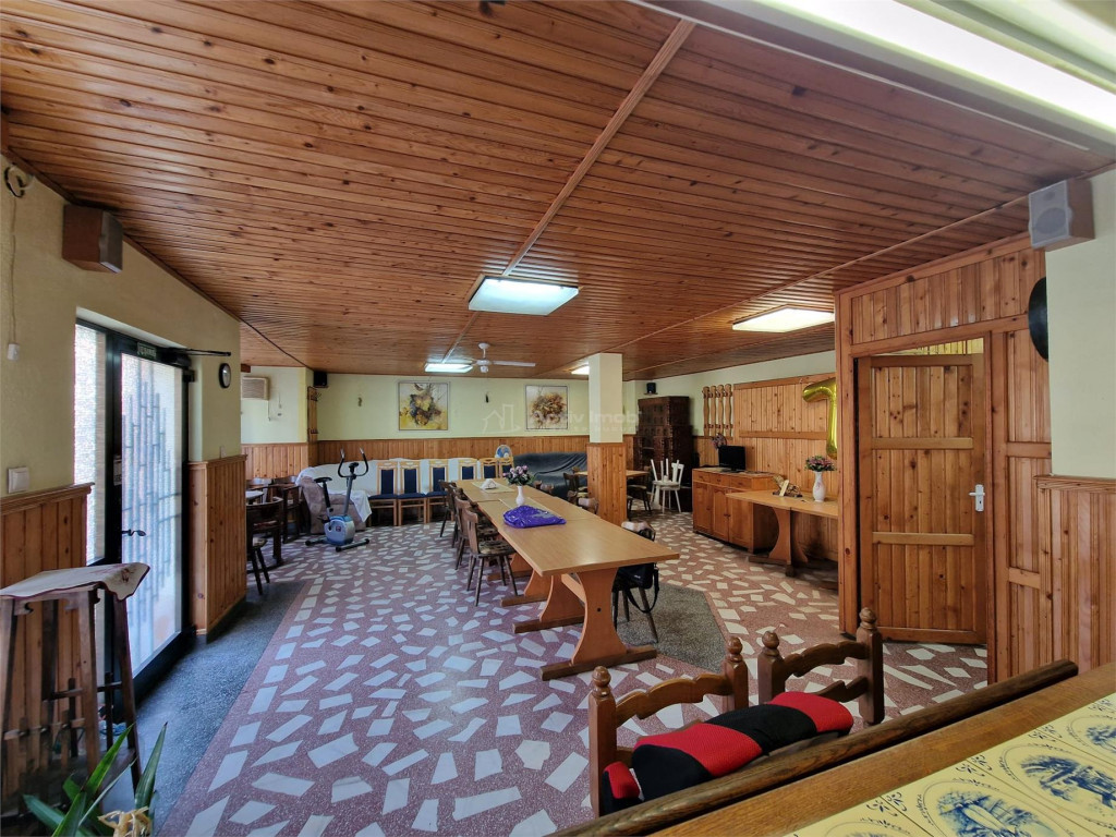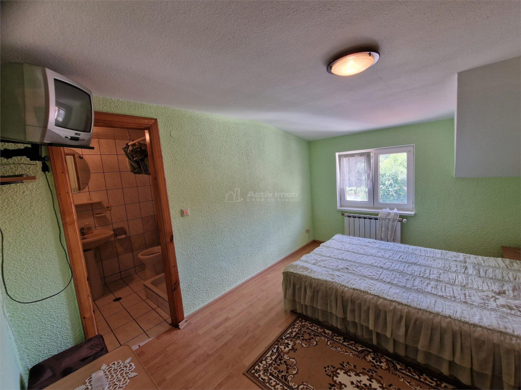 Corpul 1; - Cladire aflata pe 3 nivele in suprafata totala de cca.410 mp. a functionat ca pensiune cu 7 camere toate cu bai proprii, bucatarie, zona de bar, sala evenimente, 3 camere de depozitare, spalatorie, calcatorie, camera tehnica a centralei, toalete femei, barbati, actualmente sunt toate mobilate si utilate.