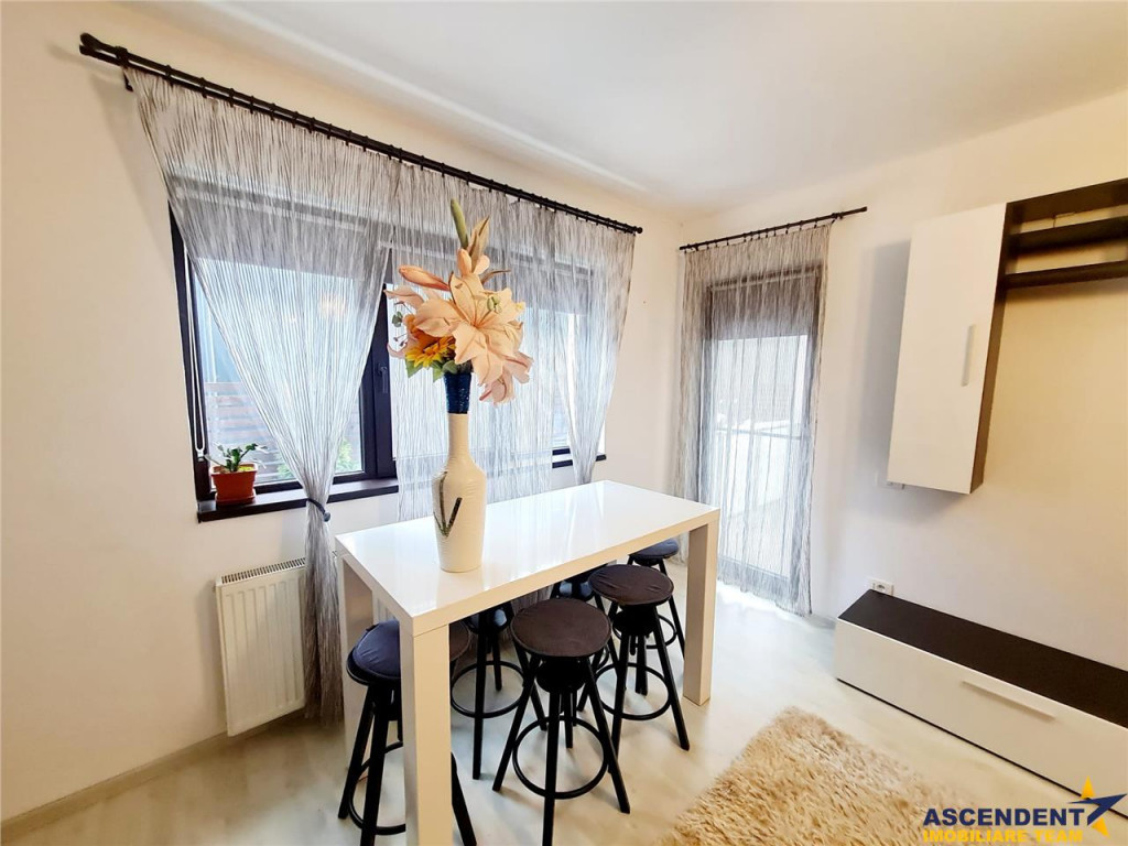 Comision cumparator: 2% TVA, din valoarea de tranzactionare Ascendent Imobiliare Va prezinta un apartament deosebit situat la intrare in orasul Ghimbav, intr unul din cartierele noi rezidentiale. Imobilul este situat la parter si dispune de curte proprie de aproximativ 70 mp. Structura este decomandata si are urmatoarea compozitie: - bucatarie complet echipata si utilata, cu zona de dinning, living generos, doua dormitoare, 2 bai cu aerisire naturala (una cu cada si cealalta cu cabina de dus), 2 terase deschise, hol, gradina privata Compartimentarea este decomandata si practica, este un camin ideal pentru locuit sau investitie. Este o proprietate luminoasa, practic ca o mica casuta cu o curte interioara, cu doua locuri de parcare interioare. Curtea este astfel impartita incat aveti si o zona separata pentru relaxare sau zona de barbecue. Se vinde mobilata si utilata, este pregatita gata pentru mutat. Potrivita pentru un cuplu, o familie cu copii, dar si pe segmentul investitional, avand o cota buna de inchiriere. Infrastructura este excelenta. la 15 minute de centrul Brasov. la 5 minute de Aeroport, aproape de magazine si de supermarket uri, banci, zone de relaxare si plimbare. Pentru detalii si programare vizionari, ma puteti contacta cu incredere! Consilier dedicat acestei proprietati: Doamna Gilda Georgescu Telefon/ WhatsApp: 0722.807.623 Detalii, fotografii suplimentare si alte variante similare exclusive: www.ascendentimobiliare.ro