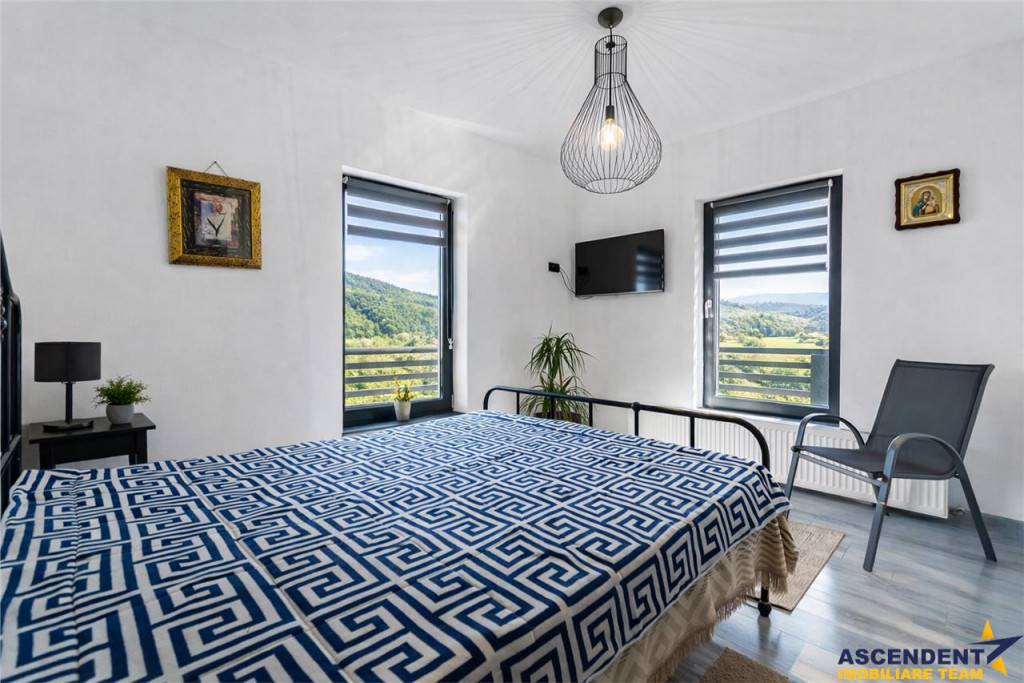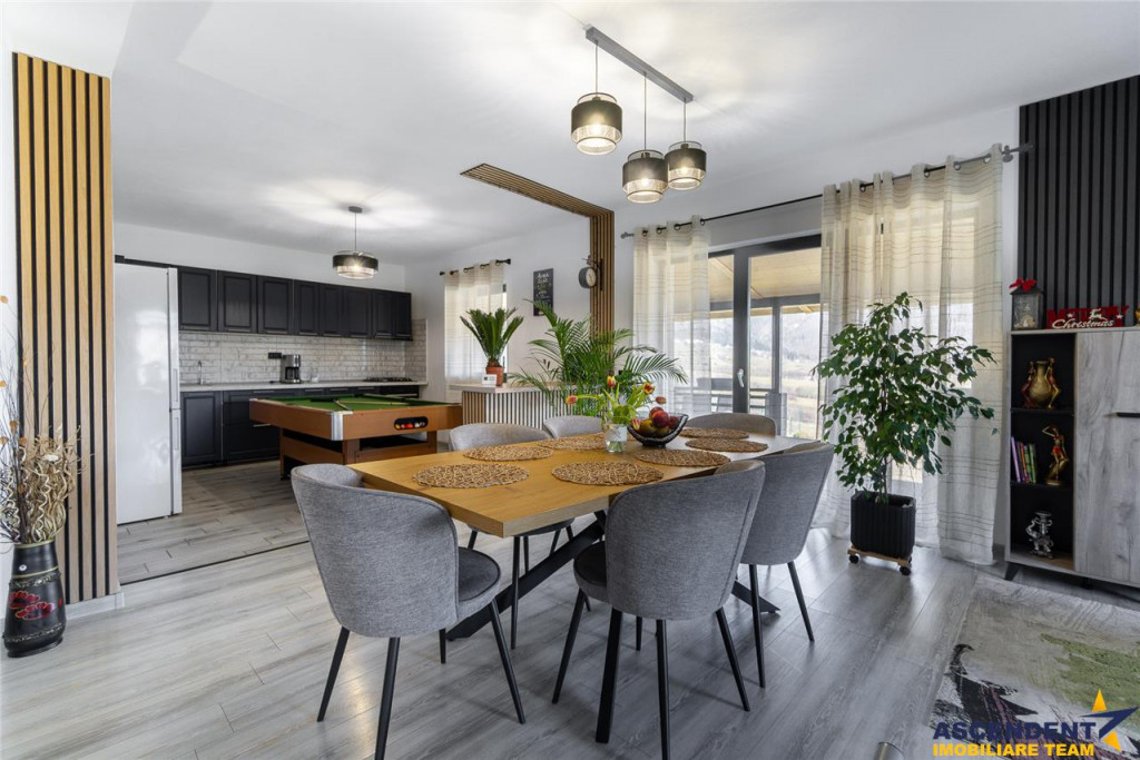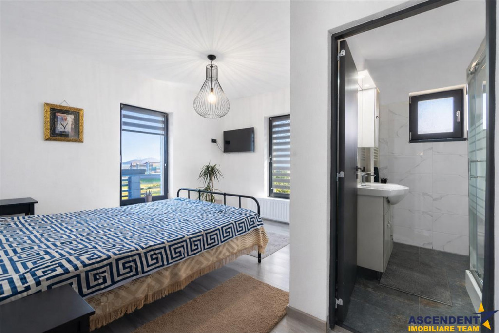 Comision cumparator: 2% TVA. Ascendent Imobiliare este onorata sa va propuna spre vanzare, in exclusivitate, o proprietate speciala, amplasata intr-un cadru natural linistit, cu privelisti deschise spre munte, in zona Bran ndash; Tohanita, una dintre cele mai apreciate locatii pentru relaxare si investitii cu valoare in crestere. Construita in 2025, casa imbina eleganta discreta cu functionalitatea moderna, oferind un spatiu luminos, aerisit si echilibrat, in care fiecare detaliu contribuie la starea de bine. Atmosfera calda si primitoare se simte imediat, fiind ideala atat pentru locuire permanenta, cat si pentru o casa de vacanta sau o pensiune boutique. Proprietatea dispune de un teren generos de aproximativ 1000 mp, perfect pentru relaxare, gradina sau momente petrecute in aer liber, cu posibilitatea extinderii cu inca aproximativ 1000 mp. Deschiderea larga si pozitionarea ofera intimitate, liniste si o conexiune autentica cu natura. Casa este desfasurata pe un singur nivel si este compartimentata eficient, cu un living open space spatios, bucatarie echipata si zona de dining, doua dormitoare confortabile fiecare cu baie proprie, o baie de serviciu si spatii auxiliare bine gandite. Mansarda, cu suprafata generoasa, ofera flexibilitate pentru amenajare ulterioara, in functie de viziunea viitorului proprietar. Un avantaj il reprezinta sistemul de energie verde cu panouri solare, putul forat si rezervorul de apa de 5.000 litri, care aduc independenta, eficienta si costuri reduse pe termen lung. O resedinta, un stil de viata, potrivit pentru cei care cauta liniste, natura si un spatiu cu adevarat valoros, fie pentru uz personal, fie ca investitie inteligenta intr-o zona cu potential turistic ridicat. Pentru detalii suplimentare sau programarea unei vizionari: Consilier dedicat ofertei Carmen Vasile Telefon / WhatsApp: 0745 684 328 Mai multe fotografii si oferte exclusive pot fi gasite pe: www.ascendentimobiliare.ro