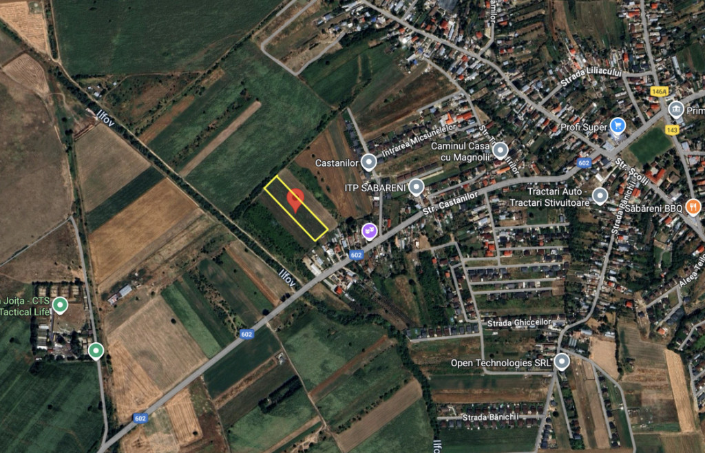 Teren constructii situat in zona linistita de case din Sabareni, acces imediat catre DN. Teren ideal pentru constructia unui complex de case. Deschidere stradala 25 metri. Id intern: P206410