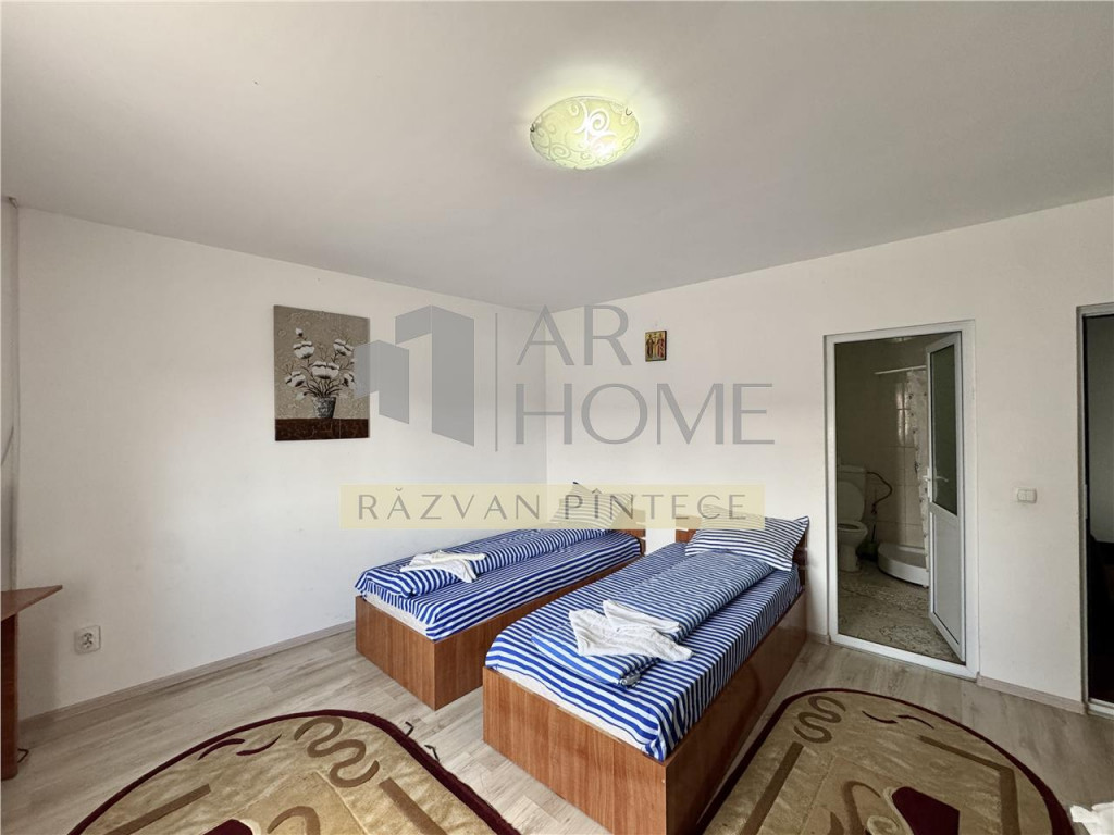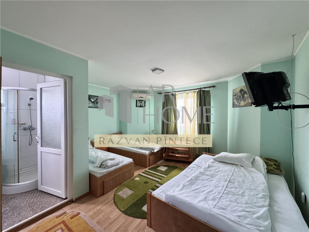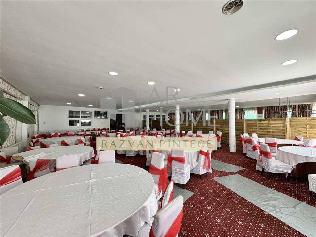 Vanzare sala evenimente, pensiune si restaurant in centru Urlati, Prahova. Proprietatea este compusa din sala de evenimente in suprafata de 199 mp desfasurata pe parter si pensiune impreuna cu restaurant in suprafata de 444 mp. Pensiunea este compusa din 8 camere cu baie proprie fiecare, bucatarie complet utilata, bar, grupuri sanitare. Cladirile sunt construite incepand din anul 2006 pana in anul 2008 pe structura de beton armat, peretii interiori si exteriori din BCA, planseu de beton, acoperis tabla ondulata. Dispun de urmatoarele finisaje si imbunatatiri: gresie, faianta, mocheta, tamplarie PVC cu geam termopan, usi interior PVC cu sticla, vopsea lavabila. Se vinde la pretul de 399000 EURO.