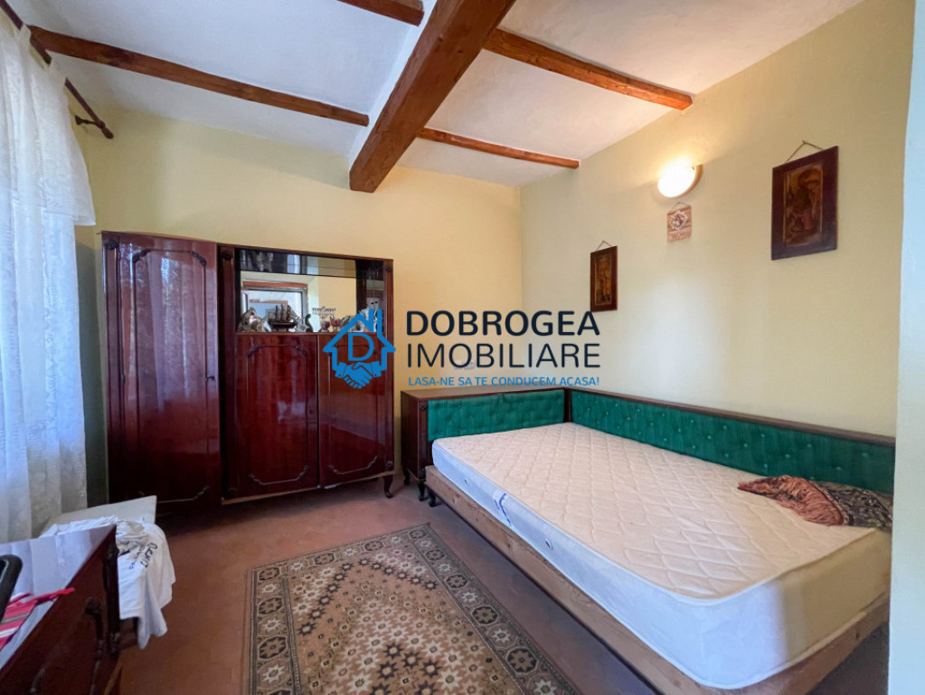 Dobrogea Imobiliare va prezinta spre vanzare 2 case individuale situate pe un teren cu o suprafața de 4860 mp, cu deschidere la 2 strazi. Ambele case sunt construite din chirpic. Casa 1: a fost facuta subzidire, tencuita interior exterior, izolata partial. Imobilul este forrmat din 3 camere, baie și hol, cu o suprafata de 45 mp utili, beci cu suprafața 12 mp. Casa 2: compartimentata cu un dormitor, hol, baie, Bucătărie cu living open space, încălzire cu centrala pe lemne și calorifere aluminiu, boiler pentru apa calda, tâmplărie PVC, suprafața de 50 mp, instalație electrică noua, pe cupru. Casa are acces in mansarda prin exterior, mansarda are prevăzută instalație sanitara pentru construcția unei bai și instalație termică pentru încălzire. In curte se afla o fosa septica de 80 mc, curent electric, apa. Id intern: P1475