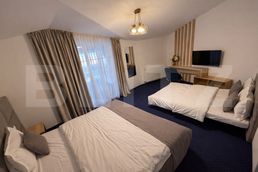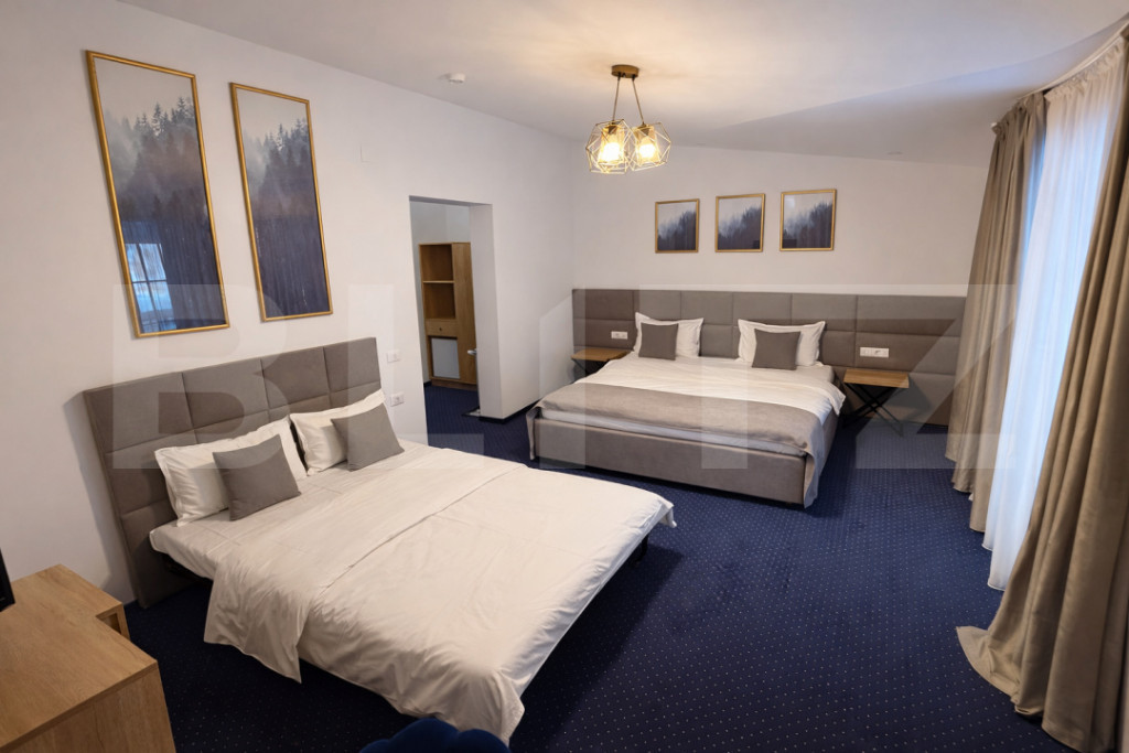 Blitz vă oferă spre vânzare o pensiune modernă situată în zona Transalpina, una dintre cele mai atractive destinații turistice montane din România, cu flux constant de turiști pe tot parcursul anului. Proprietatea impresionează prin arhitectura cu elemente masive din lemn, terase generoase și suprafețe vitrate ample, oferind lumină naturală și priveliști deschise către zona montană. Camerele sunt spațioase, complet mobilate și dotate, fiecare beneficiind de baie proprie finisată modern. Pensiunea dispune de sală de mese luminoasă cu tavan înalt, bucătărie complet utilată, zonă de relaxare, terasă acoperită cu grătar din cărămidă, spațiu dedicat activităților pentru copii și curte amenajată. Se vinde complet mobilată și utilată, pregătită pentru continuarea activității fără investiții suplimentare majore. Proprietatea este ideală atât pentru exploatare turistică imediată, cât și pentru investiție, având potențial ridicat de rentabilitate datorită amplasării strategice. Cod ofertă / ID BLITZ: P162095 Id intern: P162095