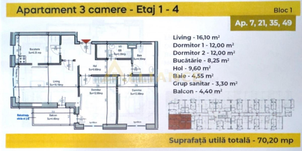 SECTOR 4 | Apartament cu 3 camere - 2 bai - decomandat | 71