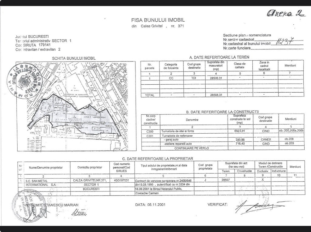 Se vinde service auto (hala veche an circa 1970) in suprafata de 426mp in bucuresti, calea grivitei nr. 371. In actele de proprietate sunt si 918mp de teren (teren sub si in fata halei). Service-ul nu are utilitati in acest moment dar s-au depus dosarele pentru a obtine utilitatile: curent, gaz, apa si canal. In cateva luni se obtin si utilitatile. Se vinde fara echipamentele de service. Daca se doresc si echipamentele va putem pune in legatura cu fostul chirias. Pretul vanzarii este de 870.000€ (usor negociabil). Colaboram si cu agentii imobiliare. Vanzatorul este persoana fizica, nu se aplica tva la vanzare.