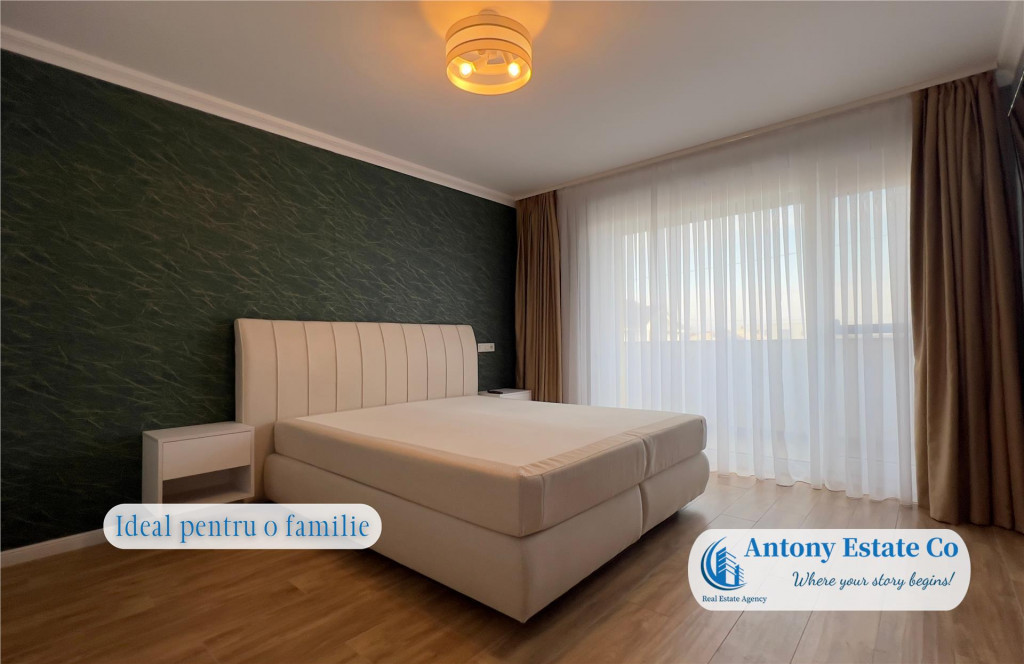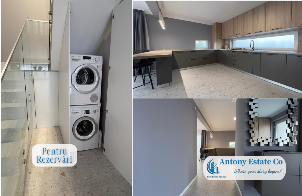 Silver Residence - Casa de inchiriat - 4 camere - P E, Zona Grigorescu ndash; Oradea Va propunem spre inchiriere in exclusivitate o casa P E, individuala, de tip duplex , aflata in zona Grigorescu - Oradea. Casa are o suprafata construita de 150 msup2;, iar suprafata utila a acesteia este de 120 msup2;. Imobilul este construit pe un teren in suprafata de 306 msup2;, avand o curte generoasa, cu terasa si gazon . La preluarea imobilului, se percepe valoarea cumulata a unei (1) chirii lunare , cu titlu de garantie. Pretul chiriei este usor Negociabil pentru cei care aleg plata in avans pe o perioada de 1 an. Imobilul dispune de 4 locuri de parcare, in fata casei. quot;Silver Residencequot; este compusa din Parter Etaj: 1 sufragerie, 3 dormitoare, 1 bucatarie, 2 bai, 1 vestibul, dressing si curte cu terasa. Plan parter: - 1 Sufragerie; - 1 Bucatarie; - 1 Baie cu cada; - 1 Terasa. Plan Etaj: - 3 Dormitoare Matrimoniale; - 1 Baie cu cabina de dus; - 2 Balcoane generoase. Proprietarul pune la dispozitie viitorului nou chirias urmatoarele utilitati: cuptor electric si plita gaz, microunde incorporat, frigider incorporat, masina de spalat rufe si uscator rufe, hota, 4 TV-uri, si intregul mobilier ce se vede in poze. Icirc;n apropierea acestui imobil se gasesc: loc de joaca pentru copii, statii de autobuz, Gradinita, acces facil spre centura orasului. Confortul termic al imobilului este realizat prin incalzire in pardoseala cu centrala gaz, costurile cu intretinerea fiind extrem de mici. Informatiile tehnice au caracter orientativ, acestea fiind preluate de la proprietar. Pentru mai multe detalii si vizionari, ne puteti contacta telefonic la numarul din anunt. Antony Estate CO - Where your story begins!