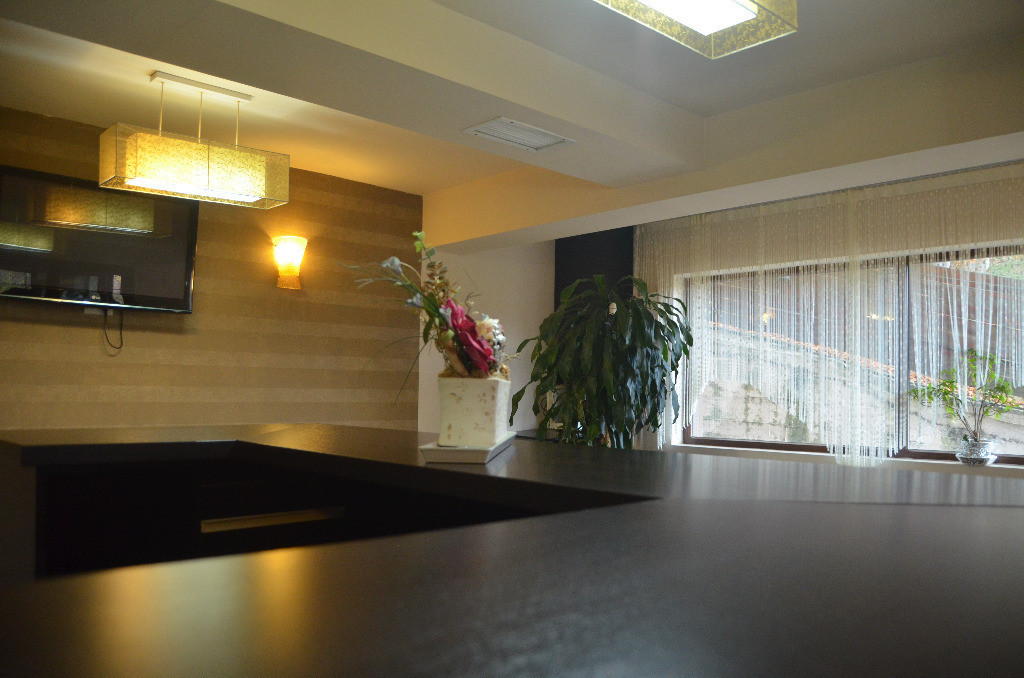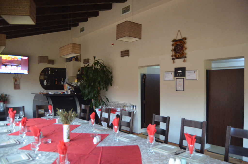 Proprietatea dispune de 18 camere matrimoniale ,un apartament cu 2 camere, toate mobilate, cu baie proprie, TV, minifrigider,balcoane.Bucatarie utilata complet, iar livingul/ restaurantul (de cca 90 mp) poate gazdui aproximativ 40 de persoane.Centrul spa prevazut cu jacuzzi si sauna,camere dus ,baie si sala de conferinta.In spate, in suprafata de aproximativ 100 mp, regasim o terasa deschisa, unde se afla gratarul si un loc de joaca pentru copii ,zona loby .Parcare proprie (aproximativ 8 locuri).