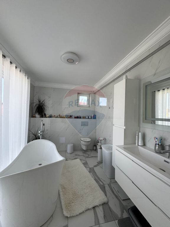 Descoperă un penthouse spectaculos, situat chiar în centrul Mediașului, cu o suprafață generoasă de 180 mp utili, complet mobilat și utilat modern. Apartamentul dispune de 2 băi, 3 balcoane (două cu vedere superbă spre turnul înclinat al Bisericii Sfânta Margareta) și loc de parcare în subsolul blocului. Datorită geamurilor mari și orientării excelente, apartamentul este scăldat în lumină naturală pe tot parcursul zilei – poți admira răsăritul dintr-o parte a locuinței și apusul din cealaltă, direct din confortul casei sau al balcoanelor exterioare. Finisajele premium, designul elegant și priveliștea panoramică transformă această proprietate într-o alegere ideală pentru cei care caută lux, liniște și exclusivitate, în inima orașului.