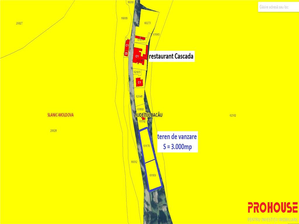 Oportunitate Unic#259; pentru Dezvoltare Turistic#259; icirc;n Sta#539;iunea Montan#259; Slanic Moldova, jud. Bac#259;u PROHOUSE v#259; prezint#259; o oportunitate remarcabil#259; de achizi#539;ionare a unui teren situat icirc;n intravilanul pitoresc al sta#539;iunii montane Slanic Moldova. Acest teren generos de 3.000 mp, cu o impresionant#259; deschidere stradal#259; de 103 ml, ofer#259; un cadru ideal pentru dezvoltarea unei investi#539;ii turistice. Localizare Strategic#259;: Situat icirc;n apropierea celebrului restaurant Cascada (strada Mihalache Spiridon nr. 39, pct. Cascada - adresa postala), terenul beneficiaz#259; de o pozi#539;ionare central#259; #537;i acces u#537;or la facilit#259;#539;ile locale. Suprafa#539;#259; Generoas#259;: Cu o suprafa#539;#259; de 3.000 mp, terenul ofer#259; spa#539;iu suficient pentru a implementa proiecte turistice de amploare, cum ar fi construirea de cabane turistice. Certificat de Urbanism: Icirc;n noiembrie 2023, a fost eliberat un certificat de urbanism care permite construirea imediata de cabane turistice de tip A. Aceasta deschide oportunit#259;#539;i ample pentru dezvoltarea unui proiect turistic inovator #537;i atractiv. Investi#539;ie Poten#539;ial#259;: Avacirc;nd icirc;n vedere certificatul de urbanism ob#539;inut, terenul devine o investi#539;ie cu poten#539;ial semnificativ de dezvoltare #537;i profitabilitate icirc;n industria turistic#259;. Exclusivitate PROHOUSE: Acest teren este prezentat icirc;n exclusivitate de c#259;tre agen#539;ia imobiliar#259; PROHOUSE, asiguracirc;nd transparen#539;#259; #537;i profesionalism icirc;n icirc;ntregul proces de tranzac#539;ionare. Pentru mai multe informa#539;ii sau pentru a programa o vizionare, v#259; invit#259;m s#259; contacta#539;i PROHOUSE. Aceast#259; oportunitate reprezint#259; un pas important spre materializarea visului dumneavoastr#259; de a investi icirc;ntr-un proiect turistic de succes icirc;n inima naturii montane.