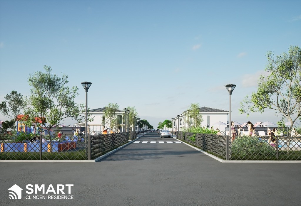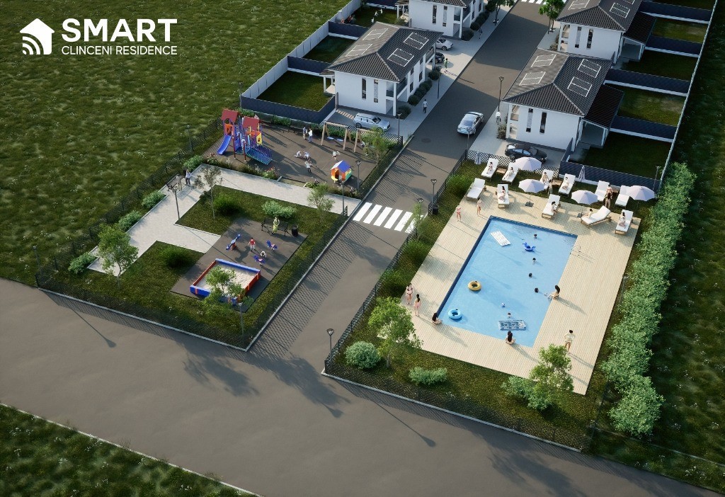 Bucură-te de confortul și liniștea din complexul rezidențial Clinceni Smart Residence! Situat lângă lac și înconjurat de verdeață, ai totodată acces rapid la centrul orașului, fiind la 2 km de Centura Bucrești și 15 km de Piața Unirii. Complexul este cu circuit închis, iar piscina și locul de joacă îl fac o alegere perfectă pentru familiile cu copii.Casele sunt extrem de eficiente energetic, fiind dotate cu panouri fotovoltaice, sistem smart, canalizare și gaz.