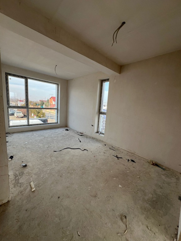 [Șoseaua Leordeni] Apartament 3 camere decomandat 63mp Apartamente cu 3 camere într-un complex nou situat pe Șoseaua Leordeni, cu termen de finalizare în iulie 2025, la prețul de 75.900 Euro + TVA. Apartamente disponibile la etajul 1/3(cu lift)și la etajele 2 și 3 ale unui bloc cu 3 etaje. Suprafață utilă 63.03mp. Caracteristici tehnice: Sistem acoperiș: tip terasă multistrat Structură: stâlpi + cadre din beton armat, compartimentare din BCA Holcim (12.5 cm interior, 30 cm exterior) Izolație exterioară: polistiren 10 cm + vată minerală 10 cm (pe porțiunile placate cu bond) Fațade ventilate: placate cu Alucobond Balcoane: balustrade din sticlă fumurie laminată și securizată Casa scării: placată cu gresie, balustrade din inox Finisaje Premium: Tâmplărie PVC: 5 camere Salamander, culoare gri antracit la exterior și alb la interior, sticlă low-E, 4 anotimpuri Centrală proprie prin condensare: 24 kW + încălzire în pardoseală Ușă metalică anti-efracție Interfon Acces securizat în ansamblu: cu barieră Mijloace de transport: STB 440, 439 + noua linie de autobuz electric Preț loc de parcare: 5000 Euro (TVA 19% inclus) Pentru mai multe detalii sau pentru programarea unei vizionări: 0787 751 547 -Andreea Popa