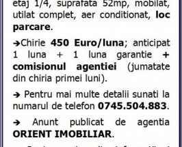 Soveja, decomandat, apartament 2 camere de inchiriat, etaj 1, mobilat,