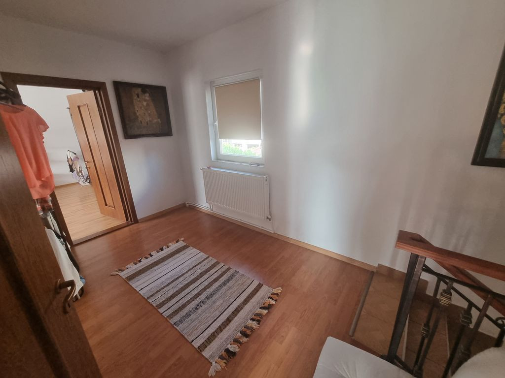 --Acord imobiliar va propune spre vanzare o vila formata din parter si mansarda construita in 2014 din bca cu placa de beton peste parter cu o suprafata construita desfasurata de 155 mp si utila de 120 mp,finisata modern cu materiale de calitate,centrala gaze,izolata exterior,se poate parca 2 masini in curte. --parterul casei este format din hol intrare,baie,living,bucatarie spatioasa open space,si hol cu casa scarii,etajul este compus din 2 dormitoare,hol,baie,balcon cu iesirea catre o scara metalica instalata pe exteriorul casei care asigura un acces separat pt etaj,ideal pentru o familie care nu doreste sa mai investeasca ulterior cumpararii ,casa se vinde mobilata utilata,recomand vizionare.