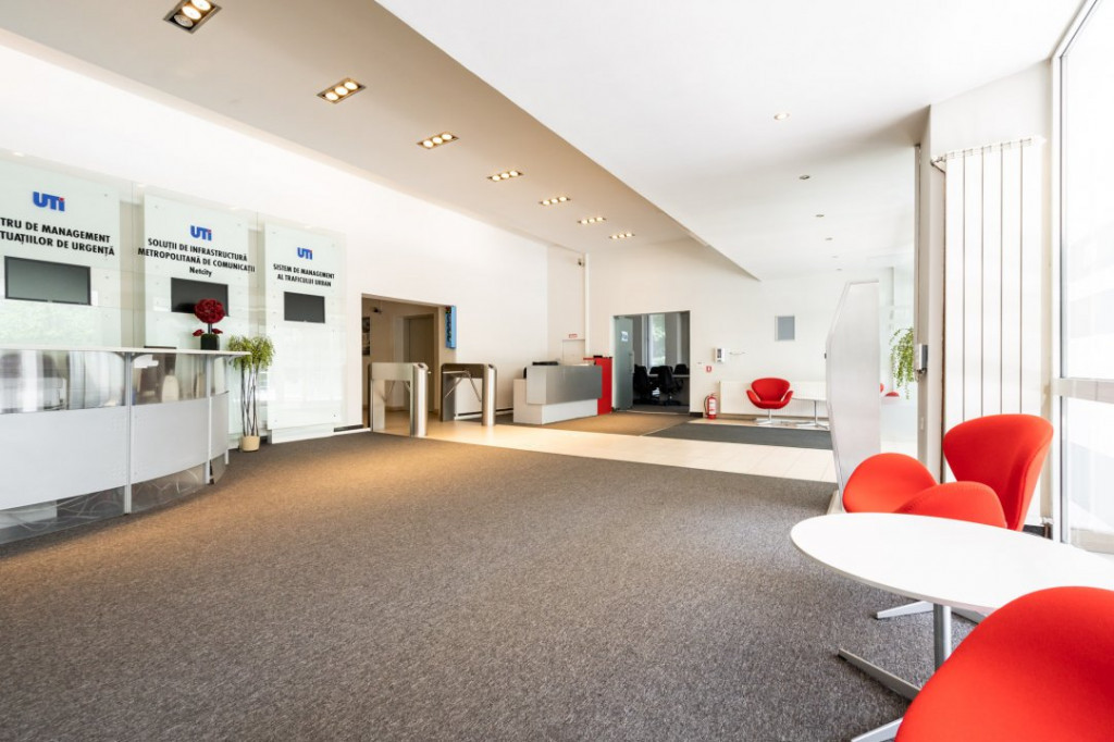 Avem spre inchiriere spatii de birouri in cladirea UTI Business Center de pe Soseaua Oltenitei, numarul 107A. Cladirea de birouri se afla la 2 minute de mers pe jos de statia de metrou Piata Sudului, dar si in imediata apropiere a statiei de tramvai cu numarul 1 sau autobuzelor 232, 313, 381, 610. Tot in imediata apropiere a spatiului de birouri exista patru restaurante si centrul comercial mall Sun Plaza. Centrul de afaceri UTI Business Center pune la dispozitie spatii cu suprafete intre 20 m.p. si 200 m.p. intr-o cladire ergonomica, cu multa lumina, cu sisteme de securitate, acestea insemnand: paza, supraveghere video, acces in curte si in incinta birourilor pe baza de cartela. Disponibilitate etaj 5: un spatiu de 20 m.p.; 2 spatii de 40 m.p.; un spatiu de 50 m.p.; 2 spatii de 60 m.p.; un spatiu de 180 m.p.. Fiecare viitor chirias beneficiaza de mentenanta exterioara, insemnand: securitate nivel, curatenie exterioara, lifturi de acces, primire corespondenta cu secretariat, atm pentru retragere fonduri in incinta cladirii, aparat de cafea si automat cu gustari. Spatiul UTI Business Center pune la dispozitie locuri de parcare in incinta cladirii cu un cost separat. De asemenea, exista loc special pentru fumatori si alei interioare foarte bine intretinute pentru recreere. Spatiile interioare pot fi dotate cu mobilier adecvat, dupa caz sau predate fara mobilier. Toate incaperile au pardoseala imbracata in mocheta, geamuri termopan din PVC si aparate de aer conditionat. Contorizarea utilitatilor este separata pentru fiecare incapere. Pretul este 10 euro m.p. + 2.9 mentenante m.p.. Totul plus TVA. Locul de parcare este 50 euro pe luna. Id intern: ZONE0104