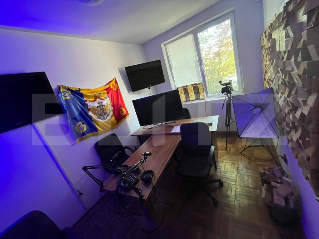 Blitz va propune acest imobil care oferă spații de birou amenajate și complet funcționale, precum și un studio special dedicat pentru podcasting, înregistrări audio/video sau content creation. Detalii spațiu: Suprafață totală: [19] mp Birouri complet amenajate Spațiu dedicat pentru podcast – tratat fonic, echipabil ușor pentru studio audio/video Conexiune rapidă la internet – ideal pentru munca remote sau în echipă Posibilitate de personalizare în funcție de nevoile afacerii tale Spațiu ideal pentru: agenții creative, consultanți, startup-uri, vloggers, podcasteri, freelanceri etc. Avantaje locație: Acces rapid la transport în comun Parcare disponibilă în apropiere Zonă cu potențial profesional și creativ Cod ofertă / ID BLITZ: P149413 Id intern: P149413