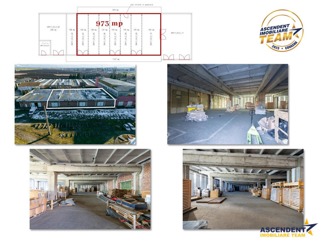 Comision inchiriere: 50% tva din contravaloarea unei chirii lunare In logistica si distributie, alegerea spatiului potrivit poate face diferenta dintre o activitate eficienta si una limitata de infrastructura. De aceea, va propunem spre inchiriere spatii de depozitare versatile, cu suprafete cuprinse intre 128 mp si 1363 mp, adaptate nevoilor companiilor moderne. Film prezentare:https://www.youtube.com/watch?v=HsaUYSYOwx4 Situate in Sfantu Gheorghe, aceste spatii ofera cadrul ideal pentru depozitare, distributie, logistica sau activitati comerciale, fiind concepute pentru a sustine fluxuri de lucru eficiente si organizarea optima a activitatilor. Caracteristici care sustin performanta afacerii: * Suprafete flexibile ndash; de la 128 mp pana la 1363 mp( 128,131,140,140,140,140,158,160,420,1363) Pretul este de : 1,8 euro/mp * Spatii generoase, usor de adaptat diferitelor tipuri de activitati * Acces facil pentru aprovizionare si logistica * Posibilitate de organizare eficienta a fluxului de marfa * Locatie convenabila pentru distributie si activitati comerciale Indiferent daca sunteti o companie in expansiune, un distribuitor regional sau un antreprenor care cauta un spatiu sigur pentru depozitare, aceste spatii ofera flexibilitatea si infrastructura necesara pentru a sustine cresterea afacerii dumneavoastra. Prin pozitionarea lor strategica in Sfantu Gheorghe, acestea reprezinta o oportunitate excelenta pentru companiile care isi doresc eficienta logistica si acces rapid catre principalele zone de interes din regiune. Pentru detalii suplimentare si programarea unei vizionari, echipa Ascendent Imobiliare ndash; Covasna va sta la dispozitie pentru a identifica spatiul potrivit nevoilor companiei dumneavoastra. Invitam colegii la colaborare! Consilier dedicat alesei oferte: domnul Lorincz Lehel Telefon/WhatssApp: 0723 369 607 Detalii, fotografii suplimentare, precum si alte variante similare exclusive:www.ascendentimobiliare.ro