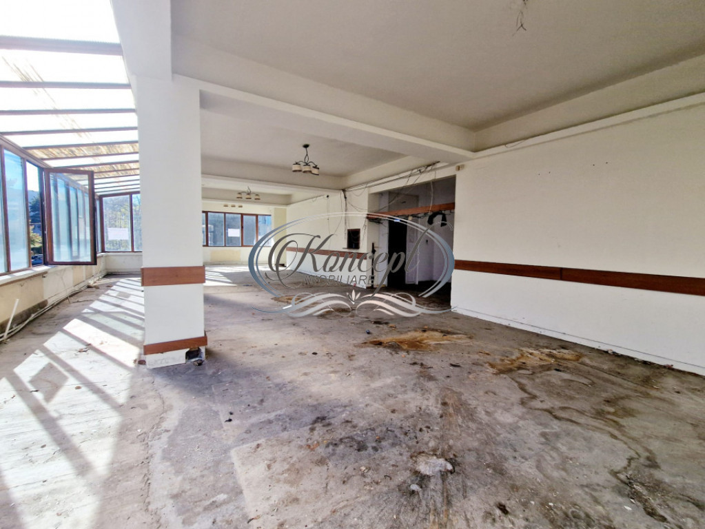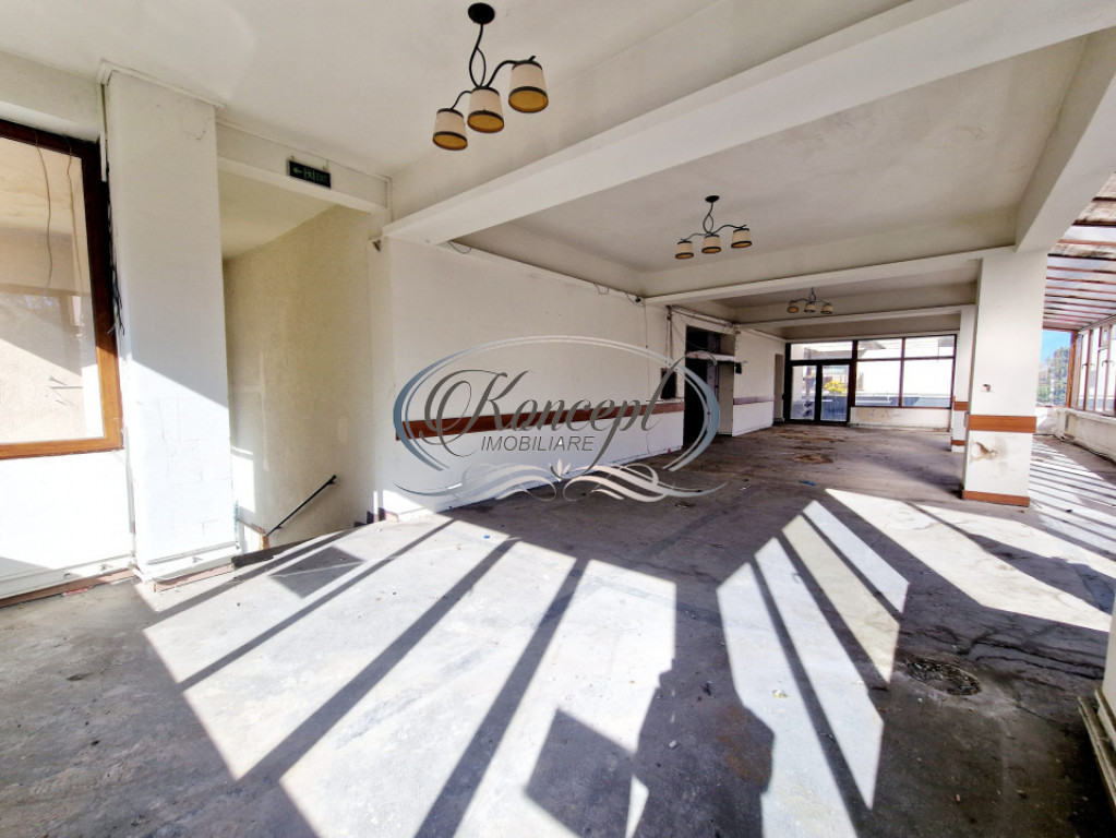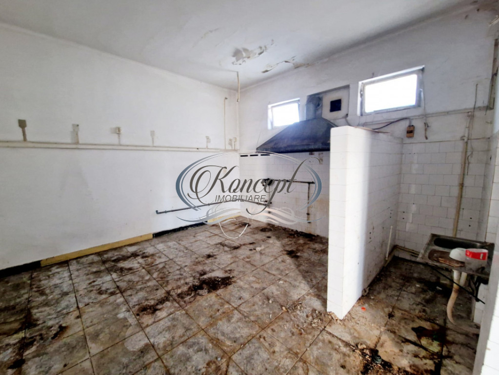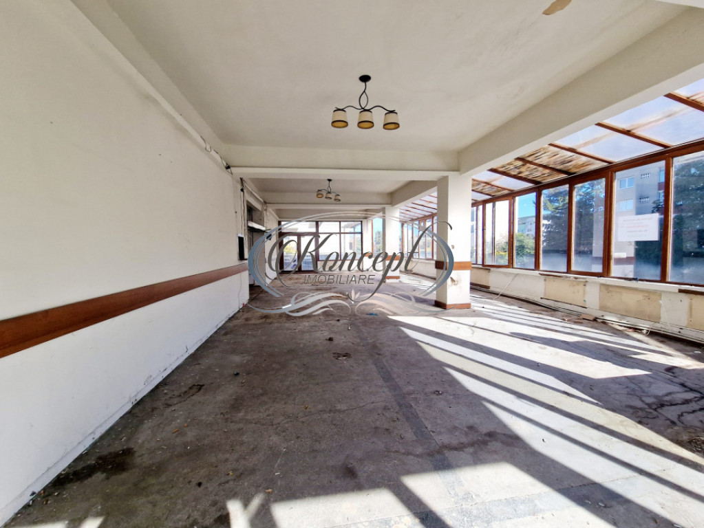 Koncept Imobiliare ofera spre inchiriere un spatiu comercial situat in cartierul Gheorgheni, la etajul 1 al complexului Diana, una dintre cele mai cunoscute zone comerciale din partea estica a orasului. Pozitionarea beneficiaza de trafic pietonal constant si vizibilitate excelenta, cu deschidere generoasa la strada de 48,6 ml si vitrina de 26,7 ml, ideal pentru expunere publicitara. Spatiul are o suprafata utila de 174,4 mp si este compartimentat in regim open-space, vestiar si 4 grupuri sanitare. Accesul este atat pietonal (2 cai), cat si auto, iar configuratia actuala permite flexibilitate in recompartimentare. Suprafata utila este completata de o terasa de tip rooftop de 97,3 mp, ideala pentru extinderea activitatii in aer liber. Imobilul necesita renovare si se ofera un termen de gratie de 1 luna pentru amenajare. Interiorul dispune de o inaltime libera de 3 m si beneficiaza de aport de lumina naturala pe tot parcursul zilei, completat de iluminat artificial. Exista curent trifazat, element important pentru activitati ce necesita putere electrica crescuta. Proprietatea este pretabila pentru alimentatie publica oferind avantajul unei terase generoase intr-o zona comerciala activa, cu vizibilitate si acces excelent. Potentialul de branding este sporit de posibilitatea instalarii unei reclame luminoase la strada. Documentatia juridica a fost verificata de agentie. Pentru informatii complete, programarea unei vizionari sau pentru a afla oferta noastra completa va stam la dispozitie telefonic, prin e-mail sau la sediul agentiei noastre, pe str. Aviator Badescu, nr. 19, Cluj-Napoca. Id intern: P20931