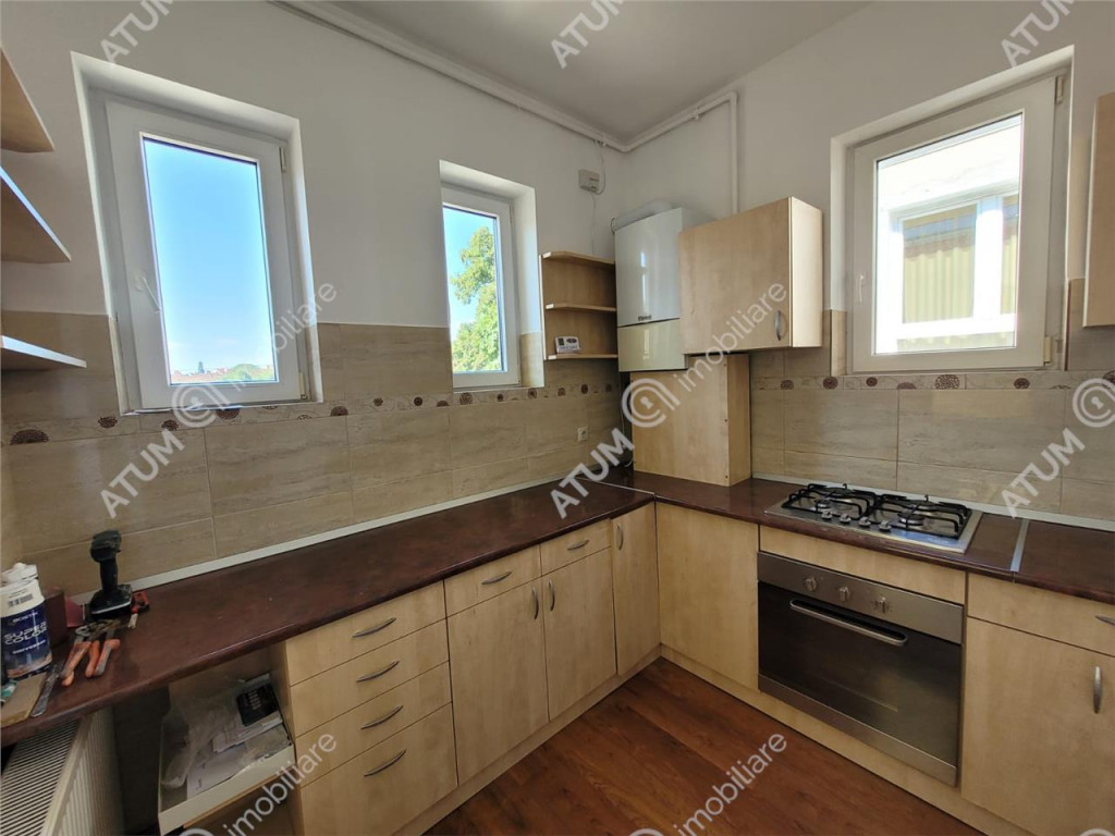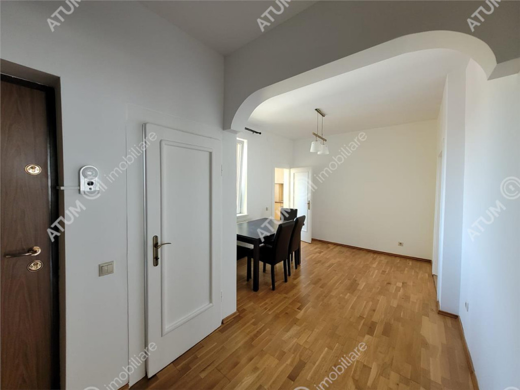 Spatiul este complet renovat, peretii si usile vopsite, parchet din lemn masiv, beneficiaza de centrala proprie pe gaz cu incalzire prin calorifere, usa se intrare metalica si geamuri cu tamplarie din PVC si sticla termopan. Acesta se preda cu bucataria complet mobilata si utilata, dotata cu plita pe gaz, cuptor, frigider, baile dotate cu geam de aerisire si obiecte sanitare, restul apartamentului poate fi amenajat dupa necesitatile personale in functie de domeniul de activitate.