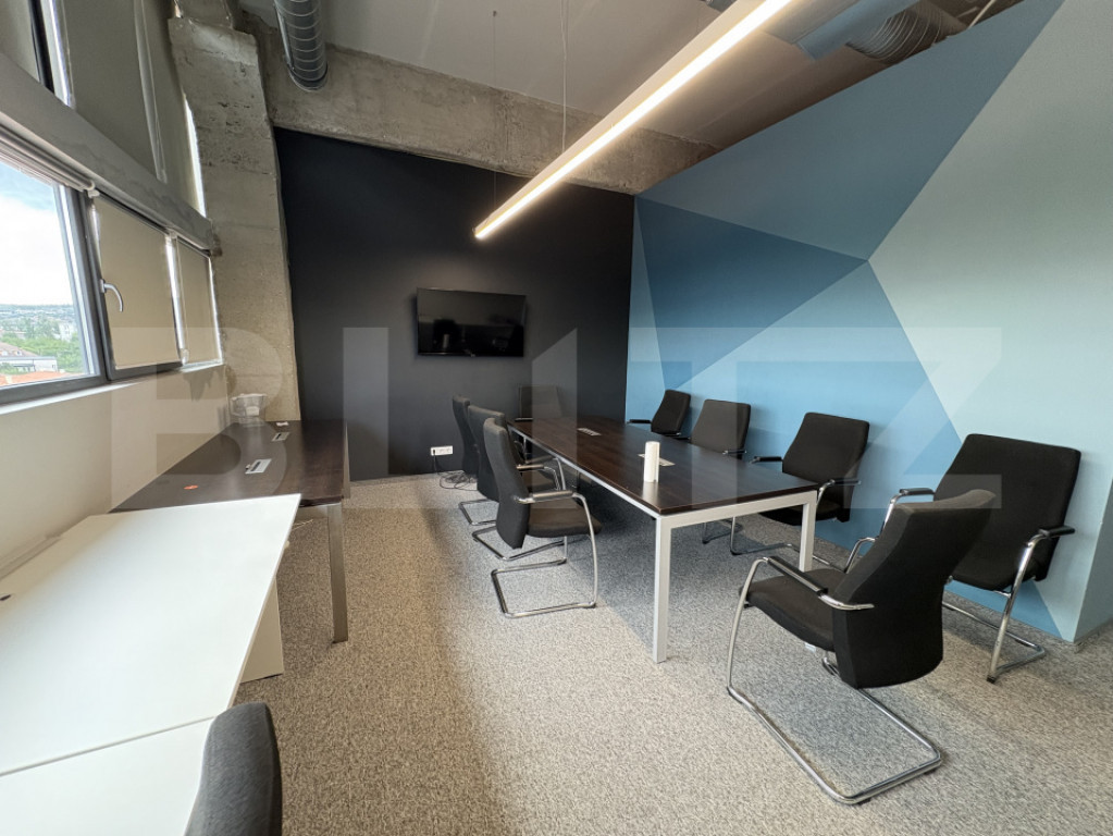 Blitz vă propune spre închiriere un spațiu de birouri modern, situat în zona CBC – Mărăști, în proximitatea Bosch, într-o clădire de birouri cu vizibilitate și accesibilitate excelente. ???? Suprafață: 350 mp (compartimentare actuală) zonă generoasă de birouri open space 4 săli de ședință complet mobilate loc de așteptare pentru clienți 2 băi ???? Dotări: mobilier de birou, scaune ergonomice, TV-uri, climatizare, infrastructură IT. ???? Compartimentare flexibilă – se pot închiria suprafețe între 100 și 500 mp, în funcție de necesități. ???? Încălzirea se realizează eficient, prin pompe de căldură cu repartitor – costuri optimizate, în funcție de consum. ???? Până la 10 locuri de parcare disponibile, în curtea clădirii, contra cost (50 €/loc). ???? Locație excelentă: aproape de stații de autobuz, restaurante, cafenele și facilități corporate. ???? Disponibil imediat – ideal pentru companii care caută un sediu profesional într-o zonă consacrată pentru business. ???? Contactează Blitz pentru o vizionare și descoperă avantajele noului tău spațiu de lucru! Cod ofertă / ID BLITZ: P149823 Id intern: P149823