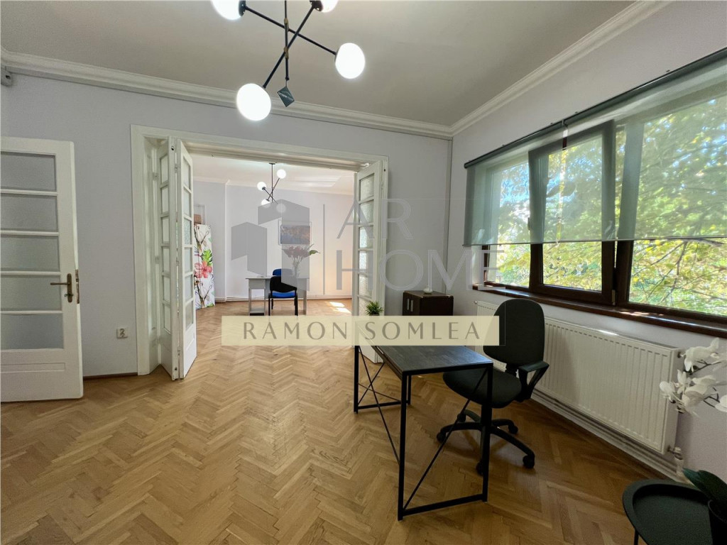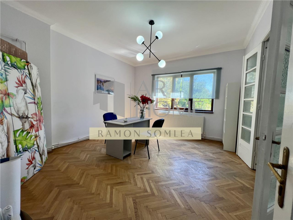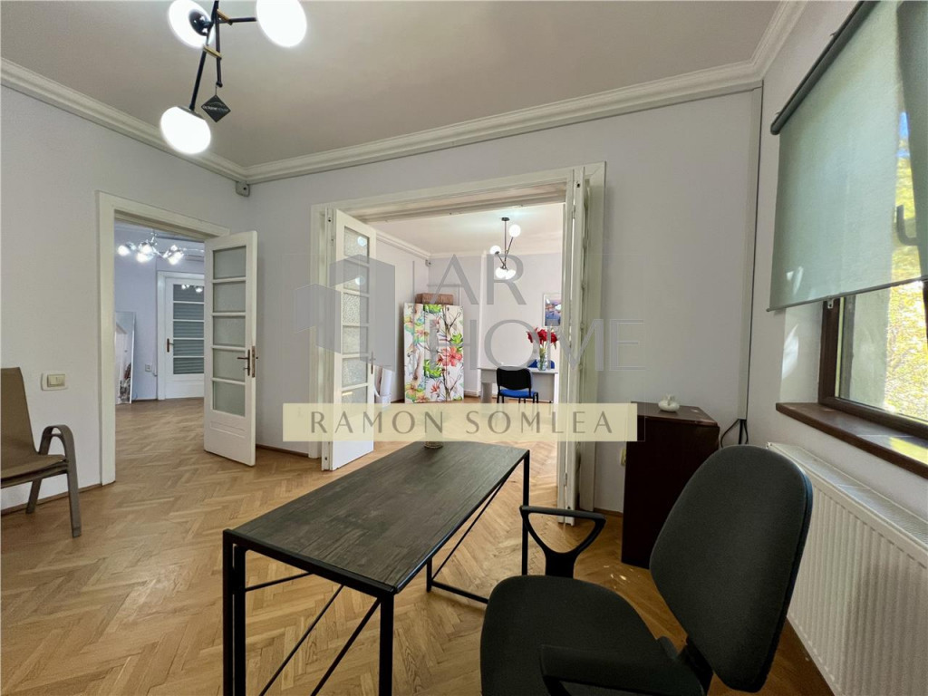 Inchiriere spatiu pentru birouri, 5 camere, in Ploiesti, ultracentral, situat la etajul 2 intr-o cladire de birouri cu regimul de inaltime P 2. Imobilul se afla intr-o zona cu vad auto si pietonal, avand ca vecinatati Hotel Prahova, Colegiul National Ion Luca Caragiale, Halele Centrale etc Are o suprafata utila de 120mp alcatuit din hol, 5 birouri , 2 bai si bucatarie. Dotari: centrala termica proprie cu contorizare individuala, parchet triplu stratificat, vopsea lavabila etc Utilitati: apa, gaz, canalizare, lumina etc. Pret: 700 EURO lunar, plus 1 luna garantie.
