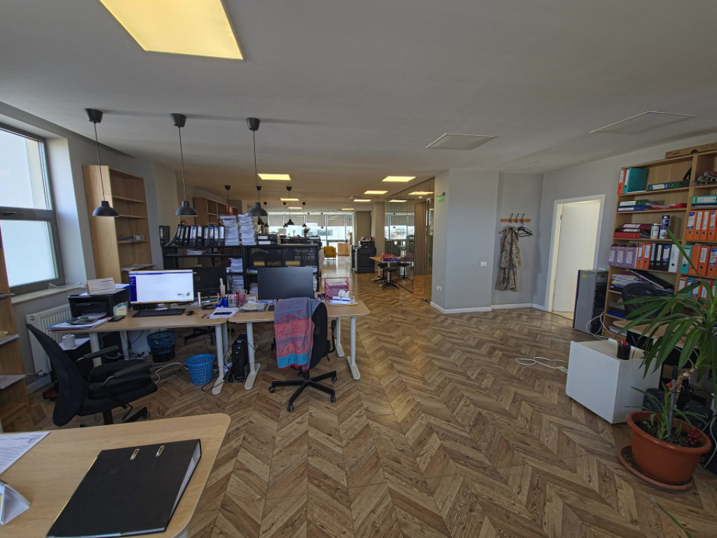 Haus Imobiliare vă propune spre închiriere un superb spațiu de birouri clasa A, situat pe Bulevardul Mamaia, în imediata apropiere a Delfinariului – una dintre cele mai căutate și prestigioase zone pentru business din Constanța. Imobilul este modern, reprezentativ, cu standarde ridicate de confort și imagine corporativă. Biroul este amplasat la etajul 4 din 5, într-o clădire premium care dispune de lift cu acces direct în spațiu, protejat suplimentar prin rulou metalic securizat, accesibil doar de către dumneavoastră sau angajații desemnați. Practic, beneficiați de intimitate totală și control asupra întregului etaj. Suprafață totală: 200,97 mp – întreg etajul 4 doar pentru dumneavoastră Spațiul este amenajat modern, cu compartimentare inteligentă, folosind pereți din sticlă pentru a crea un mediu luminos, deschis și extrem de profesional. Compartimentare: Open-space generos, perfect pentru multiple posturi de lucru 2 săli de consiliu / meeting rooms, compartimentate cu sticlă Birou separat / office privat, tot cu compartimentare din sticlă Încăpere tehnică cu: 2 grupuri sanitare separate (femei și bărbați) Chicinetă proprie Cameră tehnică cu centrala proprie pe gaz Aparate de aer condiționat încastrate în tavan Lumini profesionale tip office, finisaje premium, aspect corporativ impecabil Beneficii EXCLUSIVE ale acestei oferte Utilitățile sunt incluse în prețul chiriei Tot mobilierul office existent este inclus (birouri, scaune, dulapuri, mese, tot ce se vede în spațiu) Possibilitate de loc de parcare în subteran (contra cost) Lift cu acces direct în birou + securizare suplimentară Clădire modernă, imagine profesională excepțională Etaj complet 4 – spațiu privat, exclusiv pentru compania dvs. Ideal pentru: Sediu de firmă, companie IT, call center premium, firmă de consultanță, birou avocatură, birou notarial, firmă de arhitectură, marketing, HR, financiar-contabil, agenție imobiliară, centru de training, sau orice entitate care dorește reprezentativitate, confort și un spațiu complet echipat. Id intern: P220499