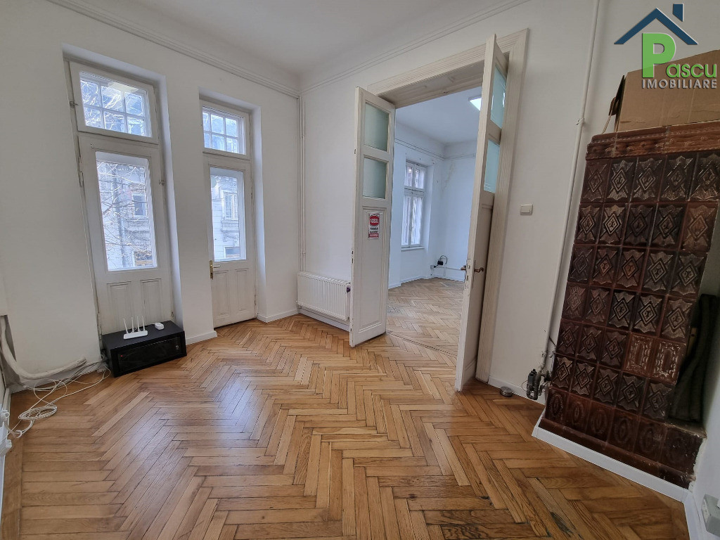 Exclusivitate PASCU Imobiliare! Blocul are o pozitionare excelenta pe strada Franklin adiacent din Calea Victoriei si bulevardul Magheru. Spatiul este situat la etajul 2, are o suprafata 80 metri patrati utili, compus din 5 camere cu intrari separate, o bucatarie mobilata si doua grupuri sanitare. De asemenea, spatiul se remarca si prin inaltimea camerelor de 3 metri. Apartamentul este ideal pentru activitati de birouri si sedii. Imobilul se afla in imediata apropiere fata de multiple mijloace de transport in comun, centre universitare, cladiri de birouri si multiple alte puncte de interes. Apartamentul dispune de centrala termica proprie, instalatii sanitare noi, din tevi PPR, calorifere din panouri de otel, aparate de aer conditionat in toate cele 5 camere. Bloc consolidat si anvelopat dupa cutremurul din 1977, stare tehnica foarte buna. Blocul este incadrat in U2 ca, clădiri care nu se vor prăbuși la un cutremur de intensitate ridicată. Imobilul este liber, disponibil imediat! Pentru mai multe detalii si stabilirea unei vizionari, accesati pascuimobiliare.ro!
