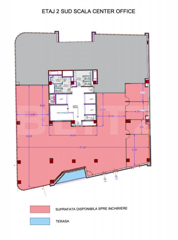 BLITZ propune spre închiriere un spațiu modern de 532,26 mp, situat la etajul 2 al clădirii Scala Center. Spațiul dispune de o terasă proprie de 12,15 mp și este compartimentat inteligent, oferind: 3 săli de ședințe o bucătărie zonă de lucru pentru aproximativ 45 de birouri individuale Dotările includ sistem HVAC și climatizare din podea, asigurând confortul optim pentru angajați. Facilități oferite de Scala Center: Recepție dedicată și control acces angajați Acces 24/7 pentru chiriași Servicii de pază și mentenanță profesională Terasă comună la ultimul etaj Parcare subterană disponibilă Beneficii spațiu: Suprafață generoasă, ideală pentru companii medii și mari Compartimentare modernă, ce îmbină birourile individuale cu spațiile de colaborare Terasă proprie pentru relaxare sau întâlniri informale Parte a unei clădiri de birouri de clasa A, finalizată în 2018, cu peste 6.500 mp disponibili Scala Center este alegerea perfectă pentru firme care caută un sediu reprezentativ, modern și eficient, într-o zonă centrală și bine conectată a orașului. Cod ofertă / ID BLITZ: P152049 Id intern: P152049
