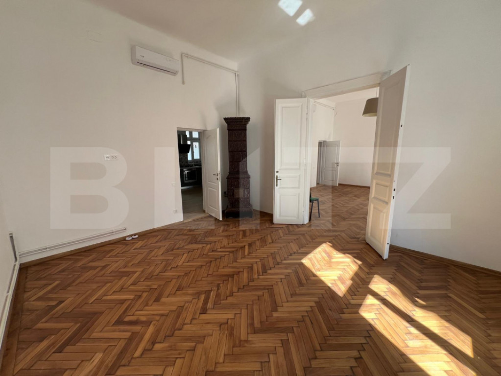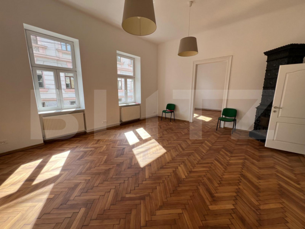 Vă propunem spre închiriere un spațiu de birouri cu o suprafață utilă de 80 mp, situat la parterul unei case elegante, într-o zonă deosebită a Clujului – chiar lângă Parcul Central. Locația oferă atât vizibilitate excelentă, cât și liniștea necesară desfășurării activităților de birou. Compartimentare și facilități: 3 încăperi generoase, ideale pentru birouri individuale sau activități de echipă 2 băi complet echipate Chicinetă utilată, perfectă pentru pauze și servirea mesei Acces facil prin curtea interioară a imobilului Confort și caracter: Aer condiționat în fiecare încăpere Încălzire eficientă prin centrală proprie și calorifere Două sobe de teracotă autentice, funcționale și cu un farmec aparte, care adaugă un plus de stil și căldură spațiului Ideal pentru: Cabinete de avocatură, birouri de arhitectură, agenții de consultanță sau alte activități profesionale care necesită un spațiu cu personalitate, bine amplasat și ușor accesibil. Nu ratați ocazia de a lucra într-un spațiu elegant, primitor și cu o locație excelentă în inima orașului! Cod ofertă / ID BLITZ: P148907 Id intern: P148907