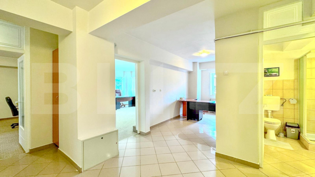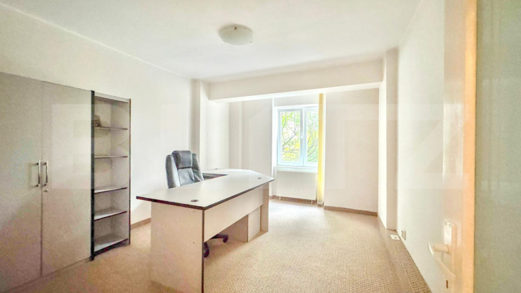 BLITZ propune spre închiriere spațiu de birouri generos, compartimentat în 4 camere, ideal pentru activități de tip office. Spațiul este luminos, bine compartimentat și pregătit pentru desfășurarea imediată a activității, fiind potrivit pentru firmă de contabilitate, IT, consultanță, avocatură, arhitectură sau alte activități administrative. ???? Compartimentare eficientă – 4 camere separate Fiecare birou este dotat cu mese, scaune și dulapuri pentru depozitare, oferind un mediu de lucru organizat și funcțional. ???? Conectivitate optimă Fiecare birou dispune de prize pentru rețea internet, facilitând organizarea eficientă a posturilor de lucru. ???? Spații auxiliare ✔ bucătărie separată ✔ grup sanitar ✔ zonă de hol primitoare ✔ spațiu de depozitare/arhivă Spațiul este luminos, bine întreținut și oferă o compartimentare practică, potrivită pentru echipe de lucru sau activități ce necesită mai multe birouri individuale. ???? Preț ușor negociabil. ???? Comisionul agenției este de 50% + TVA din valoarea unei luni de chirie, TVA-ul aplicându-se comisionului. Pentru detalii suplimentare sau programarea unei vizionări, vă stăm cu drag la dispoziție. Cod ofertă / ID BLITZ: P165477 Id intern: P165477