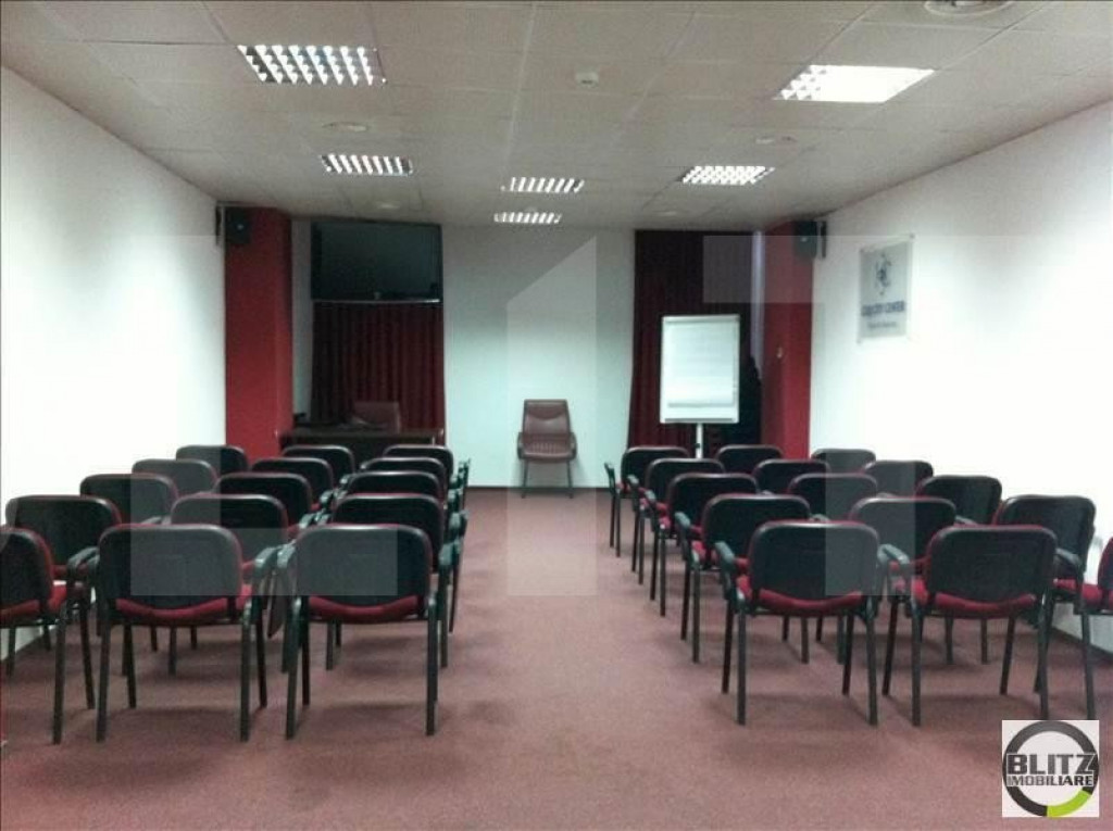 Spatiu birouri Clasa A cu o suprafata totala de 873 mp, situat la etajul 1 intr-o cladire de birouri, cu pozitionare excelenta in centrul orasului la 2 pasi de facilitatile urbane. Finisarea si dotarea standard a spatiului: -pereti perimetrali zugraviti cu vopsea lavabila alba -pardoseala mocheta -tavan casetat -geamuri cu tamplarie din aluminiu -usa principala de intrare in spatiu -aparataj electric optimizat la standard office (prize electricitate, curenti slabi, intrerupatoare) -instalatie de ventilatie si climatizare -corpuri de iluminat -grupuri sanitare -sistem de control acces Elementele suplimentare de personalizare a spatiului inchiriat (suportate de catre client): -dotarea (echiparea) oficiului/cafeteria -proiectare si executare compartimentari interioare suplimentare Taxa de Administrare: 4 Euro+TVA/mp/luna, include contravaloarea urmatoarelor servicii: o paza si securitatea (24ore/24, 7 zile din 7, asigurata de catre firma autorizata specializata in acest domeniu prin intermediul actionarii la nevoie a „butonului de panica”, supraveghere video a spatiilor comune, centrala detectie incendiu) o servicii receptie o cheltuieli de salubritate ptr. deseurile menajere o intretinerea spatiilor si a echipamentelor comune: parking si cai de acces auto sistem de securitate video a spatiilor comune din incinta imobilului sistem control acces o curatenia spatiilor comune Exista posibilitatea de inchiriere parcari la pretul de 175 eur/luna/loc. Cod ofertă / ID BLITZ: P3423 Id intern: P3423