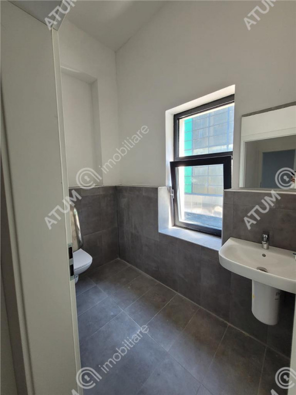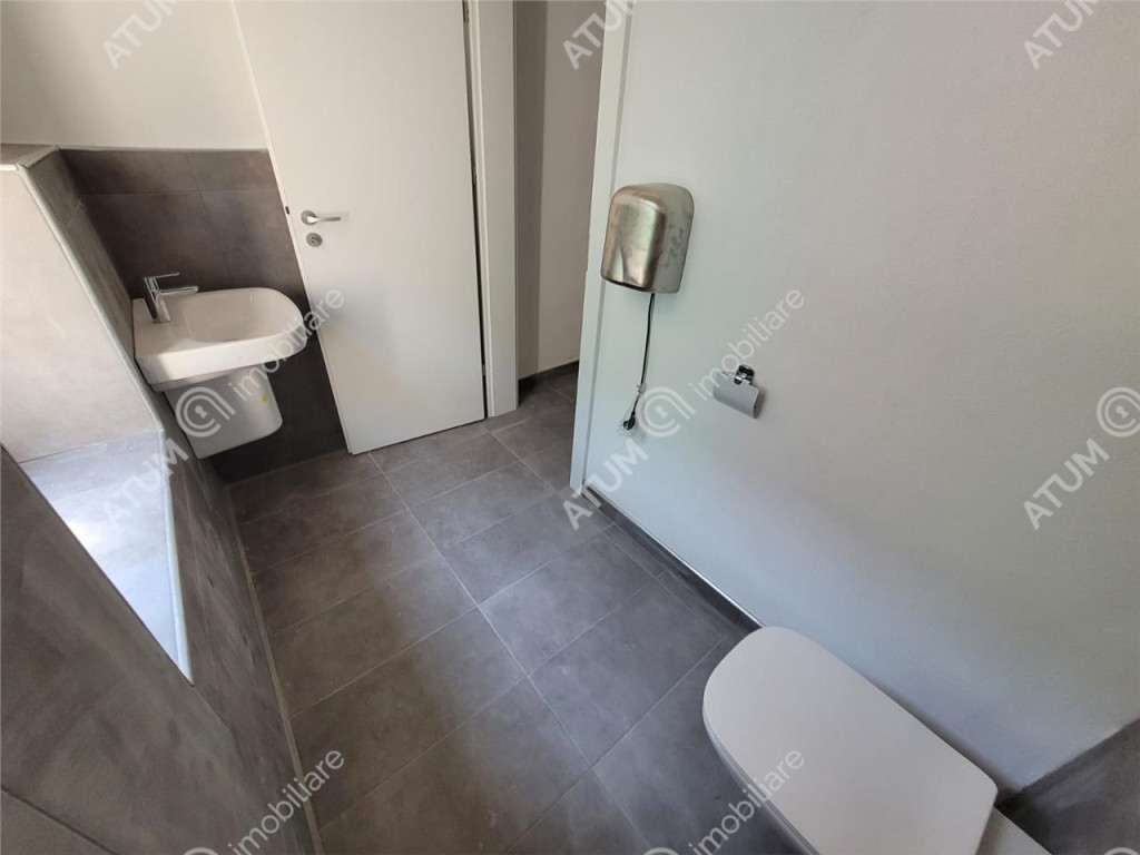 Va oferim spre inchiriere un spatiu cu suprafata totala de 330 mp, cu locuri de parcare proprii, situat intr-o cladire moderna de birouri clasa A, in zona industriala Est din Sibiu, pretabil pentru birouri, activitati sportive, spatiu comercial, cabinete, etc. Spatiul dispune de o incapere open-space cu suprafata de 265 mp, la care se adauga camera tehnica, 2 bai proprii separate si spatiile comune. Separat de aceasta suprafata, dispune si de 3 locuri de parcare proprii. Constructia este complet renovata recent, se preda cu pereti zugraviti cu lavabil alb, pardoseala cu linoleum, bai placate cu gresie si faianta, dotate cu geam de aerisire, fatada cladirii este de sticla termopana, are sistem de climatizare cu contorizare proprie, dispune de un spatiu unde sunt utilitatile trase si pregatite daca se doreste amenajarea unei chicinete. Valoarea de inchiriere lunara a spatiului este de 12 euro/mp TVA. ID intern: 2944