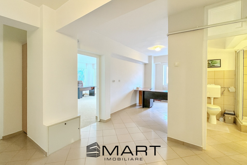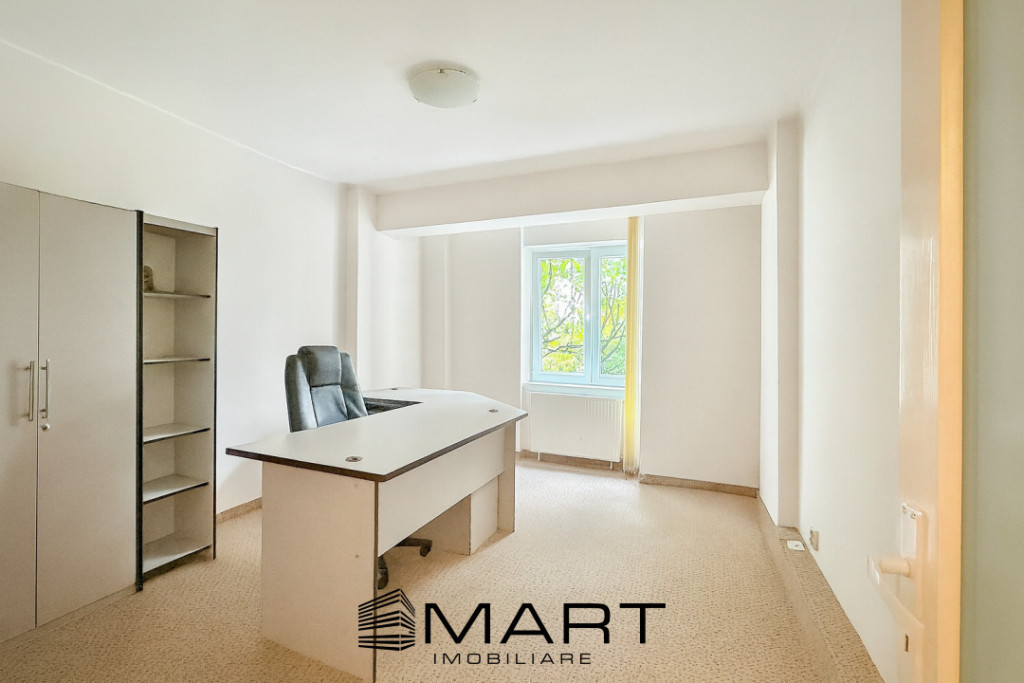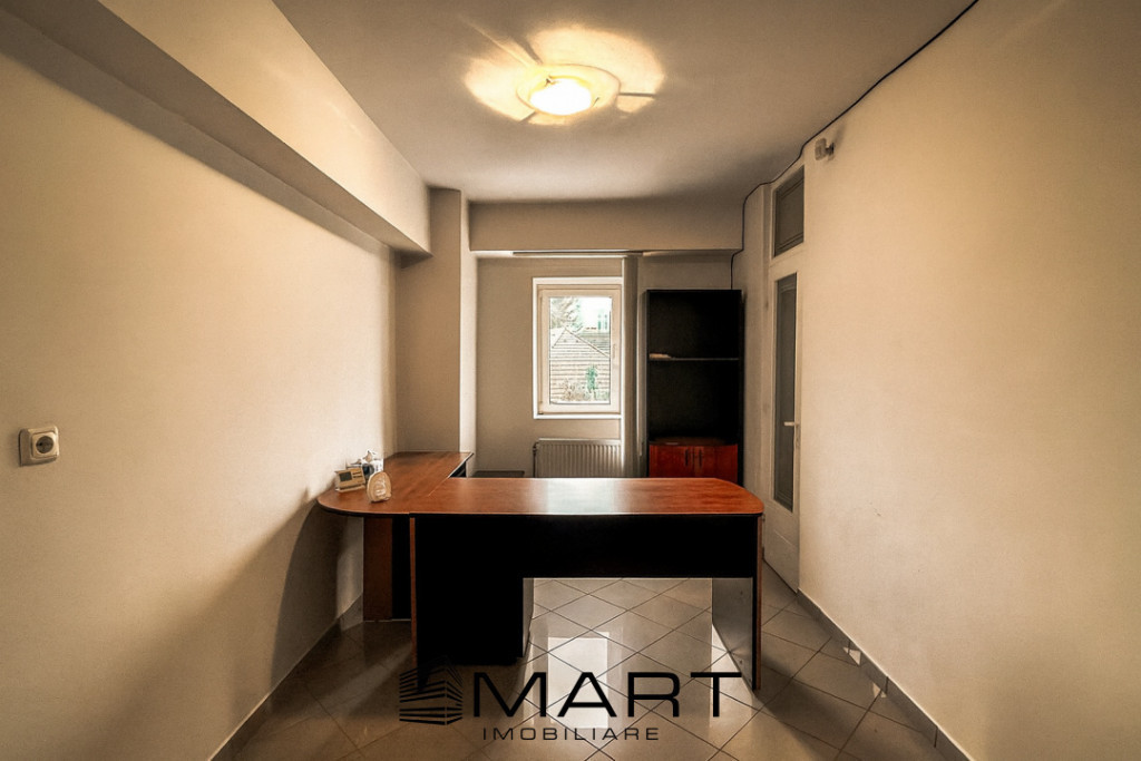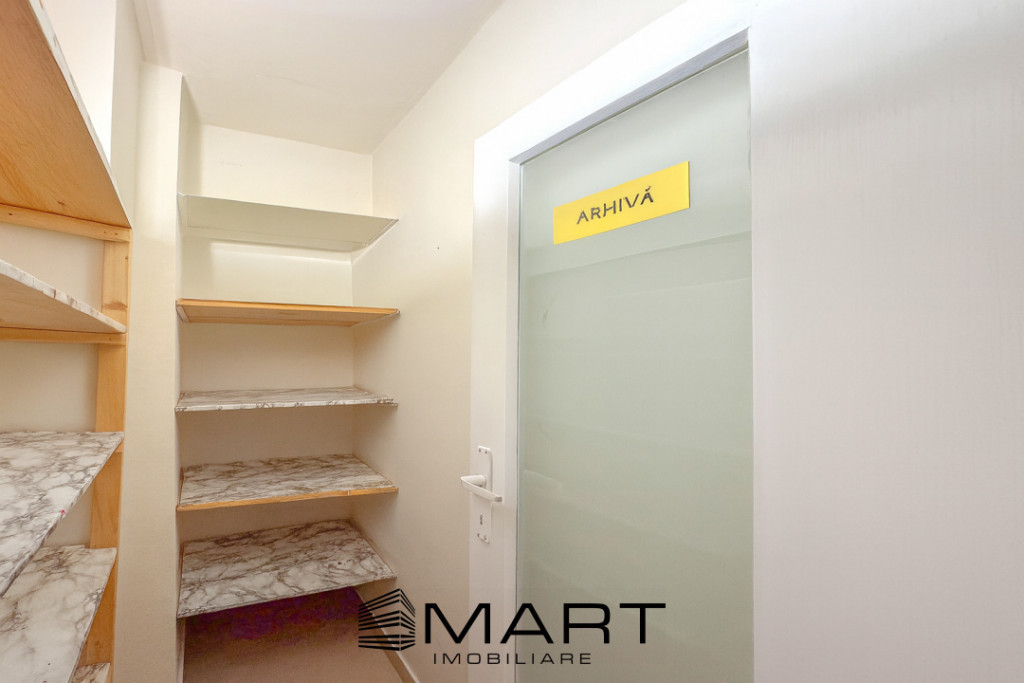 Spațiu birouri în Centrul Civic, Brașov – 106 mp Smart Imobiliare vă propune spre închiriere un spațiu de birouri situat în zona Centrul Civic, Brașov. Proprietatea are o suprafață utilă de 106 mp și este compartimentată după cum urmează: 4 birouri, , 1 bucătărie, 1 cameră cu rafturi (ideală pentru arhivă), 1 grup sanitar și 1 balcon cu deschidere din două dintre birouri. Spațiul se închiriază mobilat și utilat, exact ca în fotografii, fiind pregătit pentru preluare imediată. Amplasarea în Centrul Civic oferă acces facil către principalele instituții publice, sedii bancare, restaurante și mijloace de transport în comun, reprezentând o alegere excelentă pentru companii care doresc o locație centrală și vizibilă. Pentru mai multe detalii sau pentru a programa o vizionare, nu ezitați să ne contactați și să precizați ID : P18006 Id intern: P18006