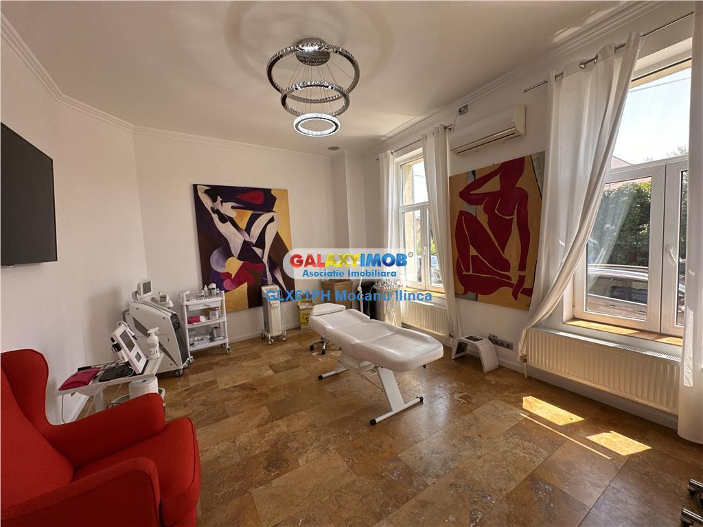 Inchiriere spatiu birouri, in Ploiesti, zona Centrala - Rudului, situat in apropiere de Penitenciar, Spitalul Schuller, ISU, Sala Sporturilor Olimpia, Liceul Economic, statii pentru mijloace de transport in comun. Se preteaza pentru sediu de firma, cabinete medicale, cabinete de avocatura, sali de cursuri. Dispune de vad comercial, zona fiind intens circulata auto. Spatiul are suprafata de 198 mp si urmatoarea compartimentare: Subsol: crama - 47 mp; Demisol: 2 camere, grup sanitar, hol - 43 mp; Parter: 2 camere, hol, spatiu de depozitare - 55 mp; Mansarda: open space, grup sanitar- 53 mp; Cladirea a fost renovata recent si este modern finisata cu gresie, faianta, parchet, tamplarie PVC cu geam termopan. Incalzirea se realizeaza prin centrala termica proprie, iar climatizarea prin 3 aparate de aer conditionat. Costul chiriei este de 1480 euro lunar, o luna avans plus o luna garantie. Comision: 50% Informatii eficienta energetica: Clasa energetica: B Consumul de energie primara: Indicele de emisii echivalent CO2: Consum de energie din surse regenerabile: