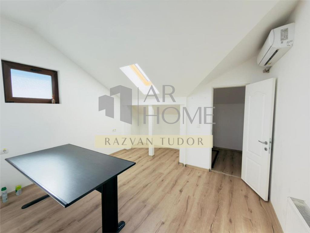 Inchiriere spatiu birouri central , situat la mansarda intr-o vila P 1 M , in Ploiesti, zona Coreco - Catedrala , zona cu vad comercial si avand ca vecinatati halele centrale , primaria Ploiesti , Palatul de Justitie , magazine , scoli , parcul M.Viteazu etc. Spatiul are o suprafata utila de 61m2 , este compus dintr-un open space mare , cu intrare in 3 camere separate, 1 baie si 1 bucatarie mobilata si utilata. Dispune de: tamplarie PVC cu geam termopan si Veluxuri , parchet laminat , vopsea lavabila alba , centrala proprie , plita pe gaz aer conditionat in fiecare camera etc. Se preteaza pentru diferite activitati comerciale precum : cabinete avocatura/notariat, birouri , cabinete medicale , agentii etc. Utilitati: apa, gaz, canalizare, lumina. Pret: 600 euro (1 luna chirie 1 luna garantie)