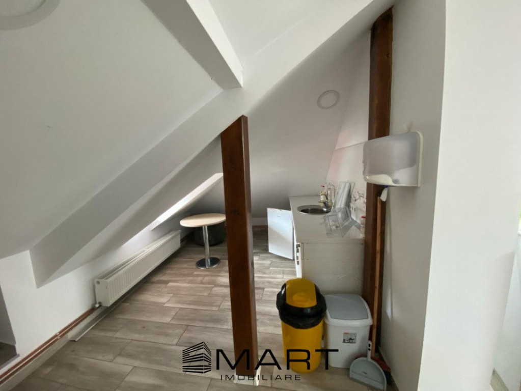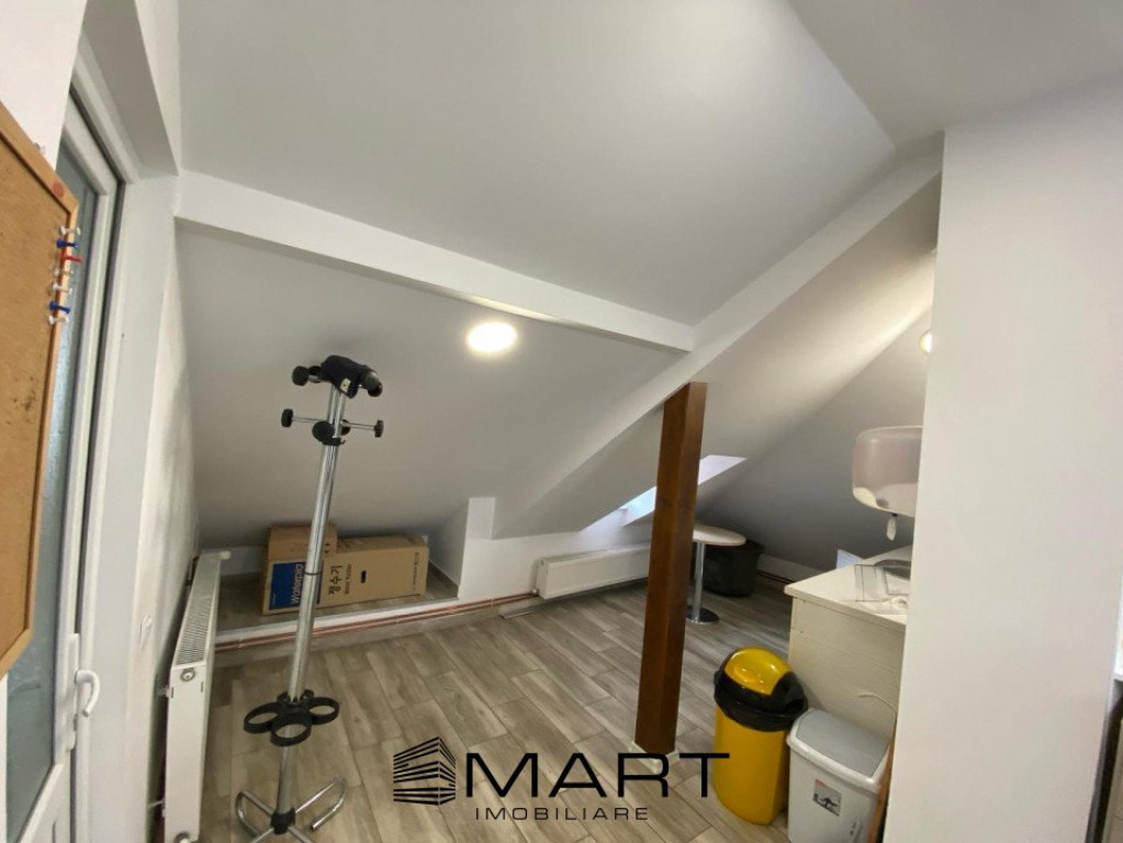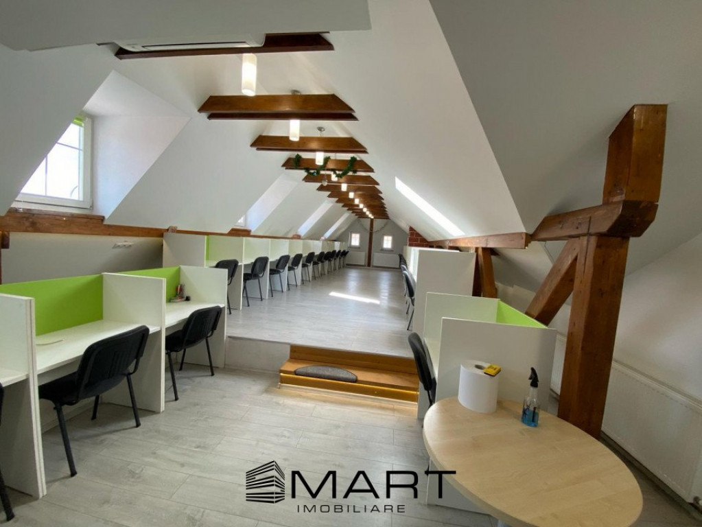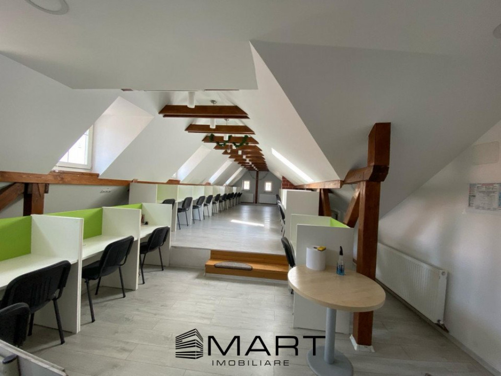 -la mansarda este birou call center, oficiu ,baie, incalzire cu calorifere, aer conditionat, iluminat led si lumina naturala.