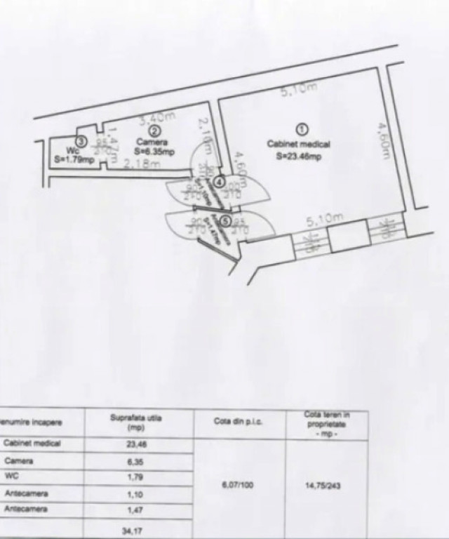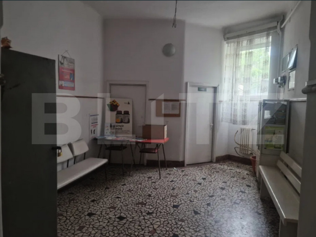 BLITZ oferă spre închiriere un spațiu medical complet funcțional, situat într-o clădire dedicată exclusiv activităților din domeniul sănătății. Spațiul este ideal pentru desfășurarea unor activități medicale precum: cabinet medicină de familie, specialități medicale, kinetoterapie sau alte servicii conexe. Compartimentare spațiu: Cabinet principal – suprafață generoasă, 23,5 mp (4,6 m x 5,1 m), luminos, ideal pentru consult și tratament. Cameră de depozitare – 10,5 mp (3,4 m x 3,1 m), perfectă pentru materiale, instrumentar sau mobilier auxiliar. Baie proprie – igienă și intimitate pentru personal și pacienți. Sală de așteptare comună – spațioasă și bine întreținută, cu aproximativ 20 de locuri disponibile pentru confortul pacienților. Spațiu suplimentar de depozitare – aflat într-o sală adiacentă cabinetului, oferind un plus de organizare. Dotări și opțiuni de amenajare: Spațiul poate fi compartimentat/modificat în funcție de specificul activității desfășurate. Amenajarea specifică activității medicale se poate realiza fie de către proprietar, fie de către chiriaș. Acces la utilități și infrastructură medicală de bază deja prezentă în clădire. ???? Locație excelentă – Str. Horea, Cluj-Napoca: Clădirea se află într-o zonă centrală, bine conectată cu mijloacele de transport în comun. În imobil funcționează deja alte cabinete medicale, contribuind la un mediu profesional și la o prezență constantă a pacienților. Vizibilitate crescută, cu acces facil pentru pacienți, colaboratori sau furnizori. Spațiul se predă igienizat, gol sau amenajat, în funcție de nevoile viitorului chiriaș. Cod ofertă / ID BLITZ: P149781 Id intern: P149781