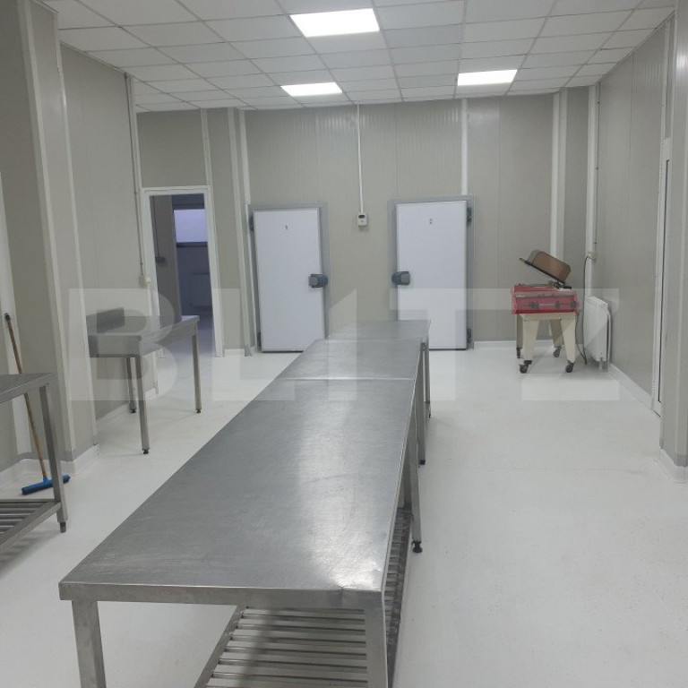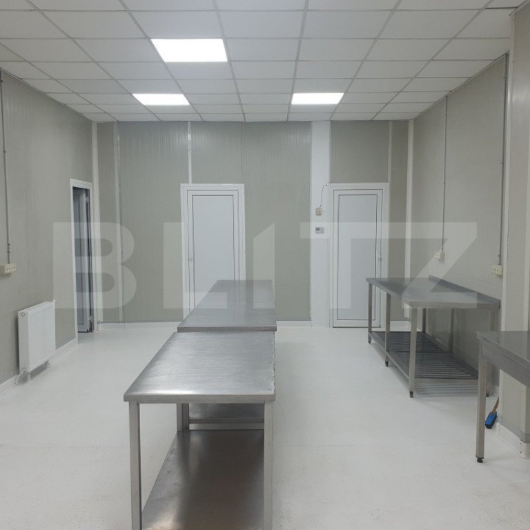 Spațiul de 200 mp este ideal pentru activități de producție alimentară. Este deja autorizat de Direcția Sanitară Umană și Sanitar-Veterinară, având circuite funcționale conforme. Obținerea autorizației de funcționare este rapidă și simplă. Spațiul respectă atât fluxul tehnologic (vezi planul anexat), cât și condițiile de igienă.