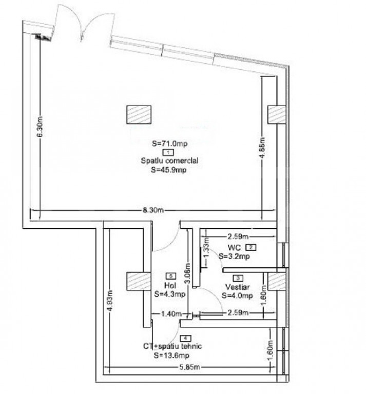 Blitz ofera spre vanzare un spatiu comercial de 71mp la parterul unui bloc nou din zona strazii Corneliu Coposu. Spatiul este situat intr-un ansamblu rezidential nou, finalizat in 2023. Acesta este prevazut cu grup sanitar, vestiar, si camera tehnica. Se preda la stadiul de finisat. Dispune de centrala termica proprie, incalzire prin calorifere si curent trifazic. Spatiul este ideal pentru investitie, acesta fiind inchiriat cu 900 euro plus tva. Va asteptam la vizionare! Cod ofertă / ID BLITZ: P168511 Id intern: P168511