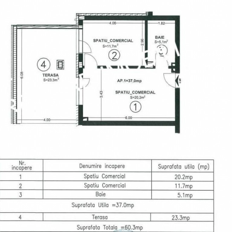 Spatiu comercial inscris in cartea funciara! Locatie: Apahida, Ansamblul Estimo de pe str.Octavian Paler, bloc nou. Parter cu acces direct din terasa dar si din casa scarii. Se afla la prima inchiriere, peretii sunt zugraviti in lavabil alb, baia finisata, centrala termica proprie, incalzire prin pardoseala. Pretabil pentru activitati de birou, proiectare, salon beauty, infrumusetare, magazin online. Compus din 2 camere, baie si terasa: suprafata utila 37 mp astfel: 20,2 mp+11,7 mp+baia 5,1 mp si TERASA 23,3 mp. Dispune de un loc de parcare. Pret de inchiriere 500 euro/luna. Se inchiriaza prin Agentia Record Imobiliare comision 50%.