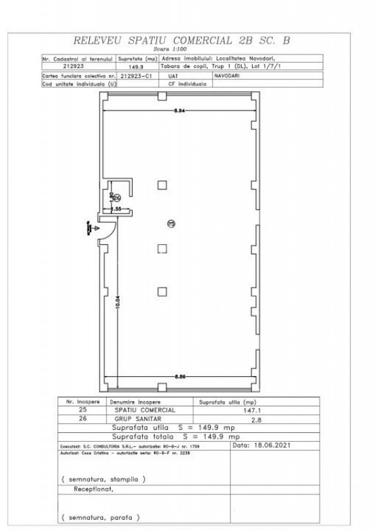 Spatiul comercial, aflat la parterul blocului, are o suprafata de 215 m + terasa de 100 m. Pretabil restaurant , autoservire, bar, hipermarket, etc.