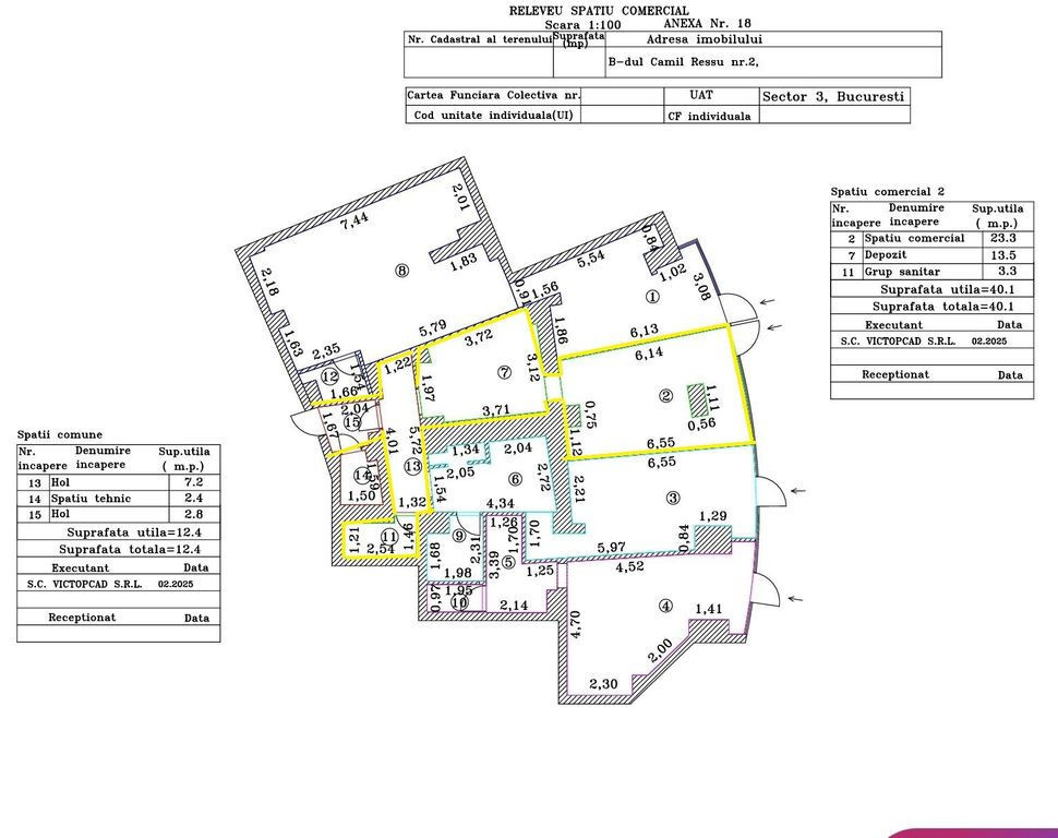 OFERTA CU 0% COMISION PENTRU CHIRIAS!! Spatiu Comercial exact in dreptul intersectiei Dristor Mc Donald s, stradal pe Camil Ressu la nr. 2 la doi pasi de metrou. Suprafata utila este de 40mp plus 4mp din zona comuna de 12,4 mp unde este si accesul secundar in spatele blocului pentru eventuala aprovizionare. Vitrina stradala este de aprox 4 metri liniari. Spatiul este complet amenjat, se inchiriaza proaspat zugravit, cu tamplarie din pvc cu geam termopan noua, placat cu gresie de buna calitate. Spatiul are grup sanitar propriu si este bransat la curent trifazic, apa si canalaizare. Ca plata se doresc anticipat cel putin doua luni de chirie si una de garantie iar prioritare sunt contractele de inchiriere pe termen lung ce asigura stabilitatea. Este singurul spatiu de inchiriat din acea locatie.