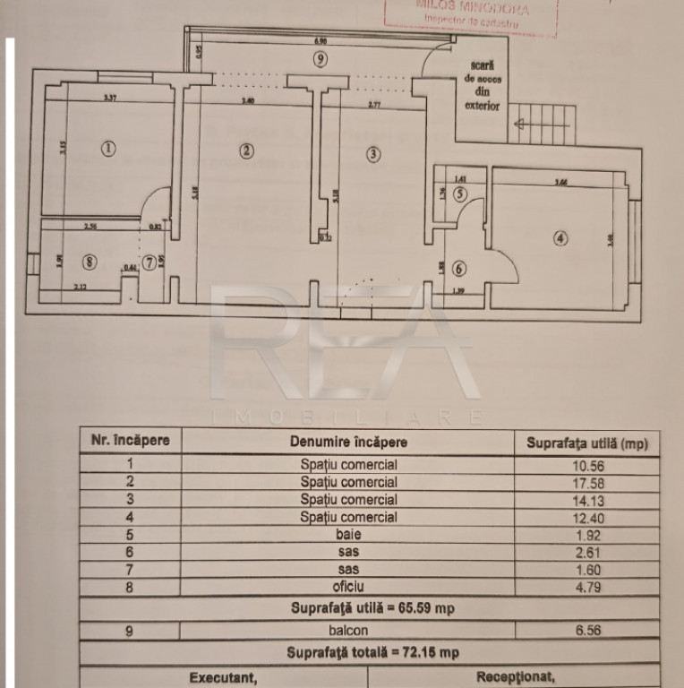 REA Imobiliare oferă spre vânzare spațiu comercial cu o suprafață utila de 73 mp, amenajat , vad format de 15 ani, situat la parter de bloc, într-o zonă foarte circulată, cu vizibilitate excelentă și intrare direct din strada. Spațiul este transformat dintr un apartament de 3 camere , amenajat , utilat , confortul termic asigurat de centrala pe gaz si aparate de AC , situat la parterul unui bloc construit in 1979 , fara risc , anvelopat , Spațiul potrivit atât pentru investiție, cât și pentru desfășurarea imediată a unei activități comerciale. ideal pentru salon beauty, cabinet, birouri, comerț sau alte activități cod proprietate P9884 Id intern: P9884