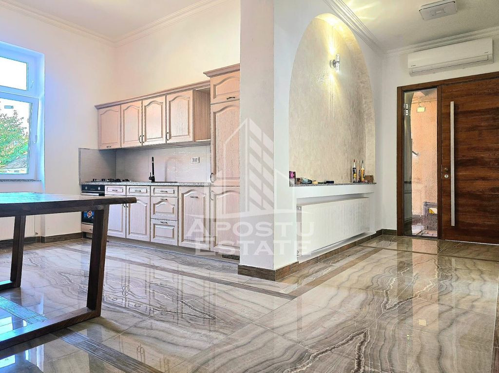 Apostu Estate va propune spre inchiriere un spatiu comercial situat in centrul Aradului, la parterul unei case. Proprietatea dispune de o suprafata utila generoasa de aproximativ 240 mp, fiind compartimentata astfel: 4 camere spatioase 2 bai moderne 1 bucatarie Spatiul beneficiaza de geamuri mari cu deschidere spre strada, oferind vizibilitate excelenta pentru afaceri. Este recent renovat, cu finisaje de calitate, pardoseli ceramice si parchet, instalatii noi si o compartimentare practica, ideala pentru desfasurarea diverselor activitati. Pozitionare excelenta, in apropiere de: Scoala Gimnaziala „Mihai Eminescu” Parcul Mihai Eminescu Magazine, farmacii, banci si institutii publice Activitati potrivite: cabinet notarial, avocat sau contabilitate salon de infrumusetare, barber shop showroom, atelier de creatie, magazin cu vitrina la strada afterschool, cabinet psihologic, clinica stomatologica Spatiul este disponibil imediat si se preteaza atat pentru activitati comerciale, cat si pentru activitati profesionale sau de servicii. Pentru mai multe detalii si programarea unei vizionari, nu ezitati sa ne contactati! ID:Cp2717887