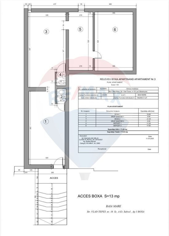 Vă propunem spre vânzare un spațiu cu potențial, situat la demisolul unui imobil, cu o suprafață utilă de 71,85 mp, compartimentat în 3 încăperi tip vagon și 2 grupuri sanitare. Proprietatea este potrivită pentru diverse activități precum: birouri cabinet (terapie, cosmetică, masaj) spațiu de depozitare organizat atelier sau activități comerciale ușoare Compartimentarea permite delimitarea eficientă a zonelor de lucru, iar existența celor două grupuri sanitare oferă un plus de funcționalitate. Spațiul necesită amenajare în funcție de destinația dorită, oferind astfel oportunitatea personalizării complete după nevoile viitorului proprietar sau investitor. ???? Poziționarea la demisol îl face o alegere practică pentru activități care nu necesită trafic intens pietonal, dar care beneficiază de acces facil. Pentru mai multe detalii va rog sa ma contactati telefonic.