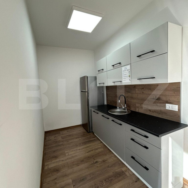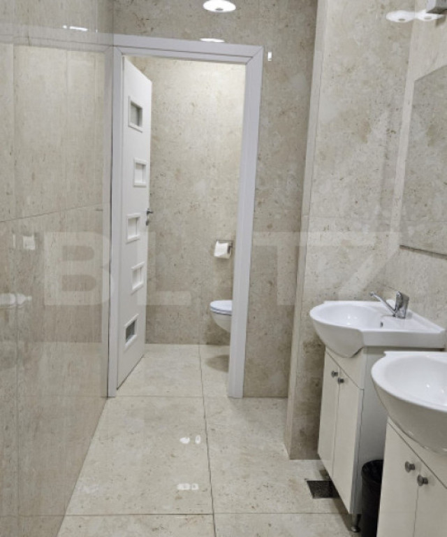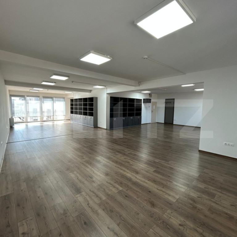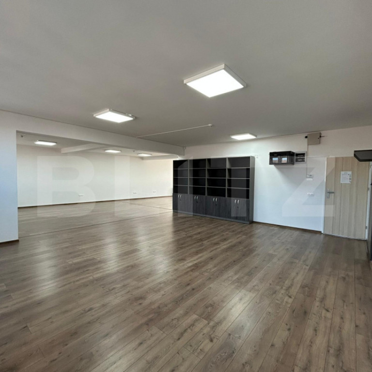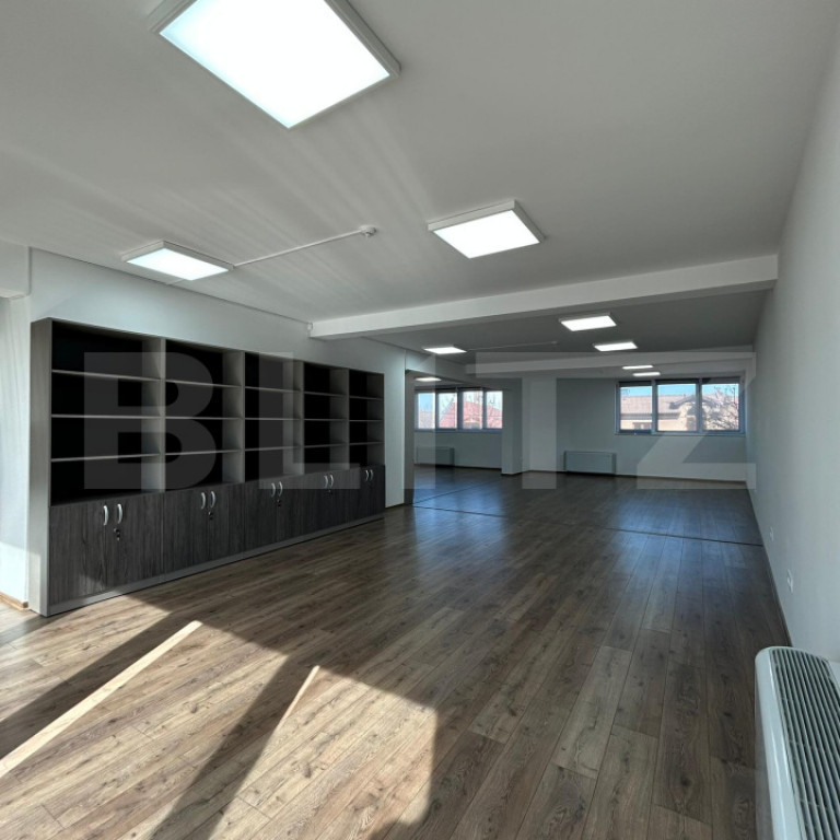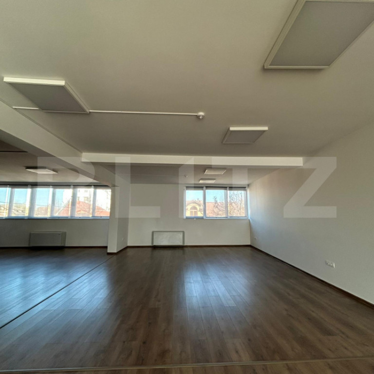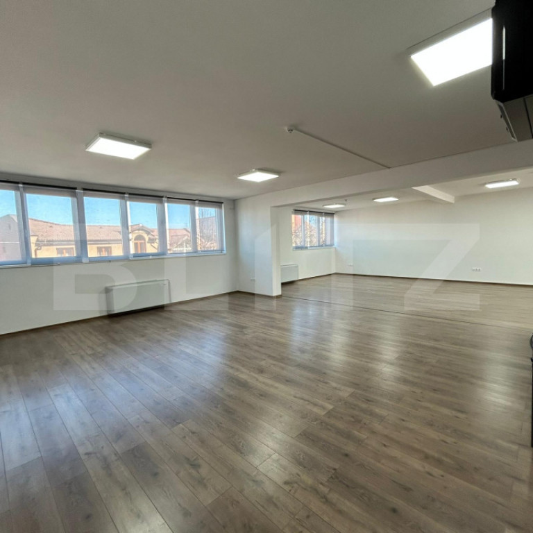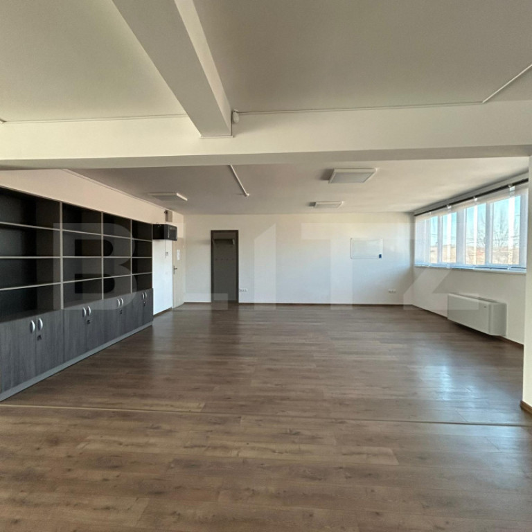 BLITZ vă propune spre închiriere un spațiu de birouri modern, situat la etajul 1 al unei clădiri noi, amplasată într-o zonă centrală și ușor accesibilă. Spațiul dispune de o suprafață generoasă de 130 mp, fiind amenajat în regim open space, cu posibilitatea de compartimentare în funcție de necesitățile viitorului chiriaș. În completare, proprietatea beneficiază de un grup sanitar de 6 mp și de o terasă spațioasă de 90 mp, ideală pentru pauze, relaxare sau întâlniri informale în aer liber. Dotări și beneficii: Sistem de climatizare prin ventiloconvectoare, eficient și economic, ce asigură confort termic pe tot parcursul anului; Izolație cu vată bazaltică, pentru un nivel ridicat de eficiență termică și fonică; Geamuri termopan de înaltă calitate, orientate spre sud și nord, ce oferă lumină naturală pe întreaga durată a zilei; Linie de bucătărie complet utilată, cu toate facilitățile necesare; Sisteme suplimentare de siguranță și contract activ cu firmă de pază; Finisaje moderne și materiale de calitate. Spațiul oferă un mediu luminos, elegant și eficient energetic, fiind alegerea ideală pentru companii care apreciază confortul, funcționalitatea și o imagine profesională. Pentru mai multe informații sau pentru programarea unei vizionări, vă invităm să contactați echipa BLITZ. Cod ofertă / ID BLITZ: P166493 Id intern: P166493