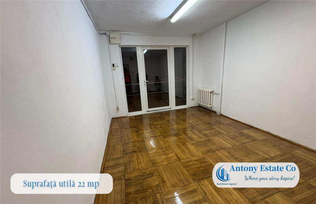 COD: DC Va propunem spre inchiriere un Spatiu comercial, pretabil pentru Birou, Salon, Cabinet, Consultanta, aflat intr-o zona de maxim interes, situat pe Al. Cazaban - Oradea. Imobilul este amplasat la Parterul imobilului cu acces din zona pietonala. Caracteristicile spatiului: - Suprafata totala utila 22 msup2;; - 1 Icirc;ncaperi; - 1 Baie de serviciu; - Acces facil si zona cu vad comercial; La preluarea imobilului, se percepe valoarea cumulata a unei (1) chirii lunare, ca si garantie. Pentru plata anticipata minim 1 an (12 luni in avans), valoarea chiriei este de 300 eur. Se ofera factura fiscala. Icirc;n apropierea acestui imobil se gasesc: Statie de autobuz, Gradinite, Scoli, Restaurante, Hoteluri, acces faci la centura/centrul orasului. Confortul termic al imobilului este realizat de la reteaua edilitara de termoficare, cu calorifere, astfel costurile cu intretinerea sunt mici. Informatiile tehnice au caracter orientativ, acestea fiind preluate de la proprietar. Pentru mai multe detalii si vizionari, ne puteti contacta telefonic la numarul din anunt. Antony Estate CO - Where your story begins!