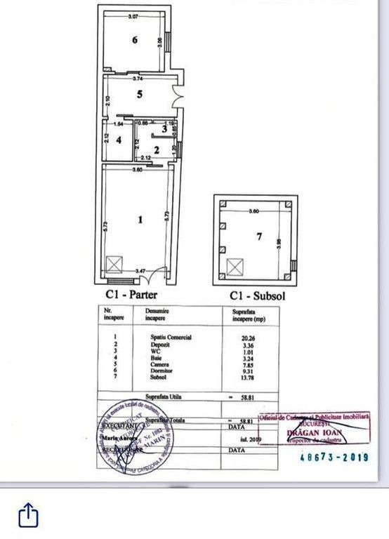 Spatiu Comercial Eroii Revolutiei - Sos Giurgiului Zen Space Imobiliare va propune spre vanzare un spatiu comercial, construcție la parter cu suprafata utila compusa din 27,86 mp spatiu si 13,78 mp beci, situat in zona Eroii Revolutiei la ~3min de Metrou Eroii Revolutiei. Clădirea este individuala, nu la parter de bloc, avand o poziționare premium cu randament optimizat, fiind ideal pentru cei care cauta investitii de tip venit pasiv. Clădirea dispune de centrala proprie pe gaz, sistem de supraveghere video + alarma. Descriere: Beciul dispune de scara metalica si are podeaua placată cu gresie Spațiul comercial este o oportunitate excelenta pentru investitorii care caută un spațiu reprezentativ, intr-o zona cu potential ridicat, aflata in tranziție urbana cu potential de reconversii si densificare. Pentru cei care doresc un spațiu mai mare în continuarea spațiului comercial (vezi schița din galeria foto), există posibilitatea de a fi achiziționată și garsoniera cu suprafața de 25 mp, compusa din 1 cameră, baie, bucătărie, complet mobilată/utilata și care dispune de centrala si contor propriu. Prețul pachetului (spațiul comercial + garsoniera), este de 360.000 euro, cu mențiunea ca garsoniera nu se vinde separat! Pentru mult mai multe detalii și stabilirea unei vizionări, contactați Paula 0726171888