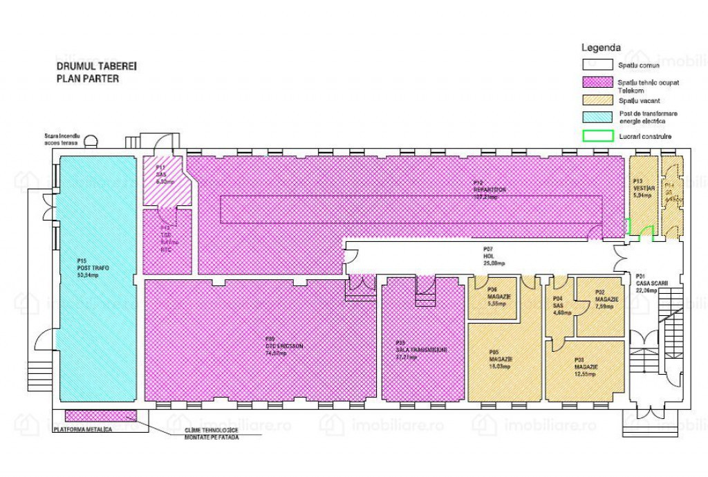 ID Proprietate: CP977013 --------------------------------------------------------------------------------- - Imobil situat in Mun. Bucuresti, Sector 6, zona Drumul Taberei si este compus din: 1. Teren intravilan, categoria de folosinta curti-constructii, in suprafata de 1.413 mp; 2. Cladire, cu suprafata construita la sol de 448 mp. - Cladirea principala are un regim de inaltime S+P+2E cu o structura de cadre din beton armat, plansee si grinzi din beton armat, precum si fundatie din beton armat; - Constructia este racordata la reteaua de electricitate, apa si canalizare. - Suprafata totala utila este de 1.047 mp, desfasurata astfel: Subsol, 180; Parter, 54 mp; Etaj 1, 406 mp; Etaj 2, 407 mp. - Inaltimea interioara este de 4,75 m; - Mijloace de transport in comun: Metrou, la cca. 100 m; Autobuz, Troleibuz; - Imobilul este pretabil pentru urmatoarele activitati economice: Sala pentru fitness; Sala de sport; Spatiu comercial; Spatiu pentru productie; Depozit etc. --------------------------------------------------------------------------------- Informatii privind inchirierea proprietatii: - Documentatie completa; - Perioada contractuala minima: 5 ani calendaristici; - Chirie lunara: 6.000 euro, +TVA; - Garantie de buna executie: Chiria pe 2 luni; - Chirie platita in avans: 1 luna; - Se acorda perioada de gratie pentru amenajare si instalarea in spatiu: 1 luna.