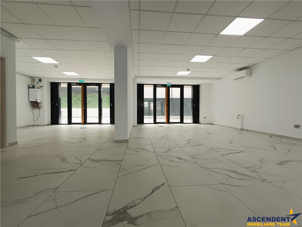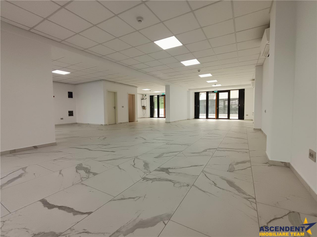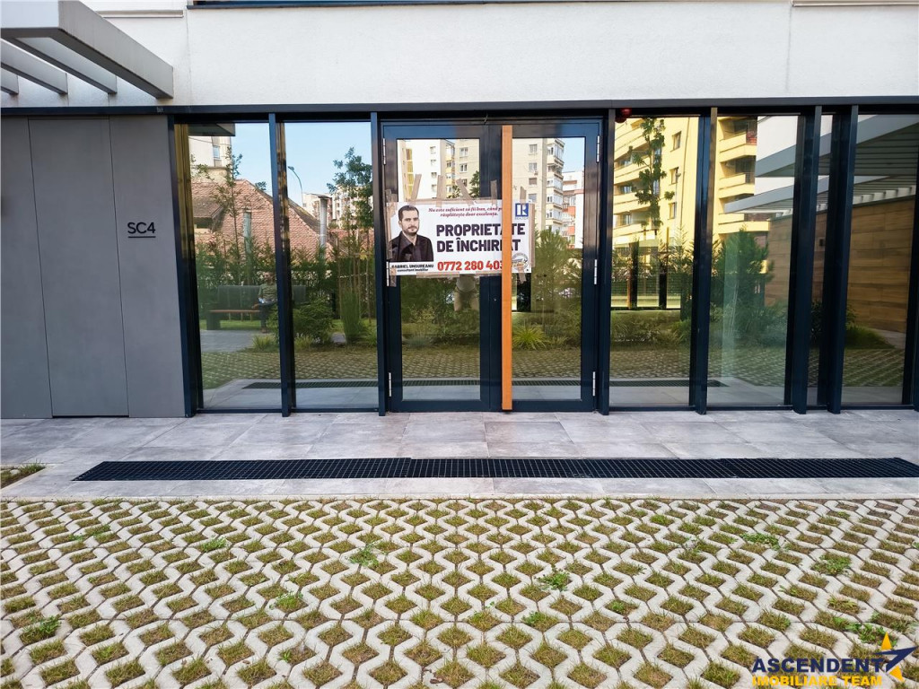 Comision chrias: 50% TVA, din contravaloarea unei chirii lunare, o singura data. ASCENDENT IMOBILIARE propune spre inchiriere un spatiu comercial de top, situat la parterul unui bloc din cel mai exclusivist ansamblu rezidential, respectiv ansamblul Cosmopolit din str. Mihai Viteazul nr. 1. Desfasurat pe 138 mp utili, cu doua fronturi, din care unul spre o terasa generoasa de peste 70 mp, in partea din spate, iar celalalt spre strada Mihai Viteazul, pus in valoare de o peisagistica superba cu gazon, flori si plante ornamentale. Spatiul detine doua grupuri sanitare, este configurat pe doua zone, cu patru usi de acces, actualmente fiind deschis, insa se poate compartimenta cu usurinta, in functie de nevoi si dorinte. Proprietatea se preteaza pentru majoritatea obiectelor de activitate, indeplinind si cele mai exigente cerinte. Finisajele si executia sunt de cea mai buna calitate, conferind spatiului o stare de bine si un potential imens. In pardoseala exista mai multe zone cu scurgeri si alimentari cu apa, in caz ca este necesar domeniilor precum clinica, salon de infrumusetare, cabinete, etc. Completeaza oferta faptul ca imobilul se afla in apropiere de toate punctele de interes precum, Afi mall, Centrul Civic, Aula Universitatii, statii RATBV, bd. Grivitei, Onix, etc. Pentru vizionare sau mai multe detalii, va stam cu drag la dispozitie. Consultant imobiliar dedicat acestei oferte: Gabriel Ungureanu Tel. 0772280403